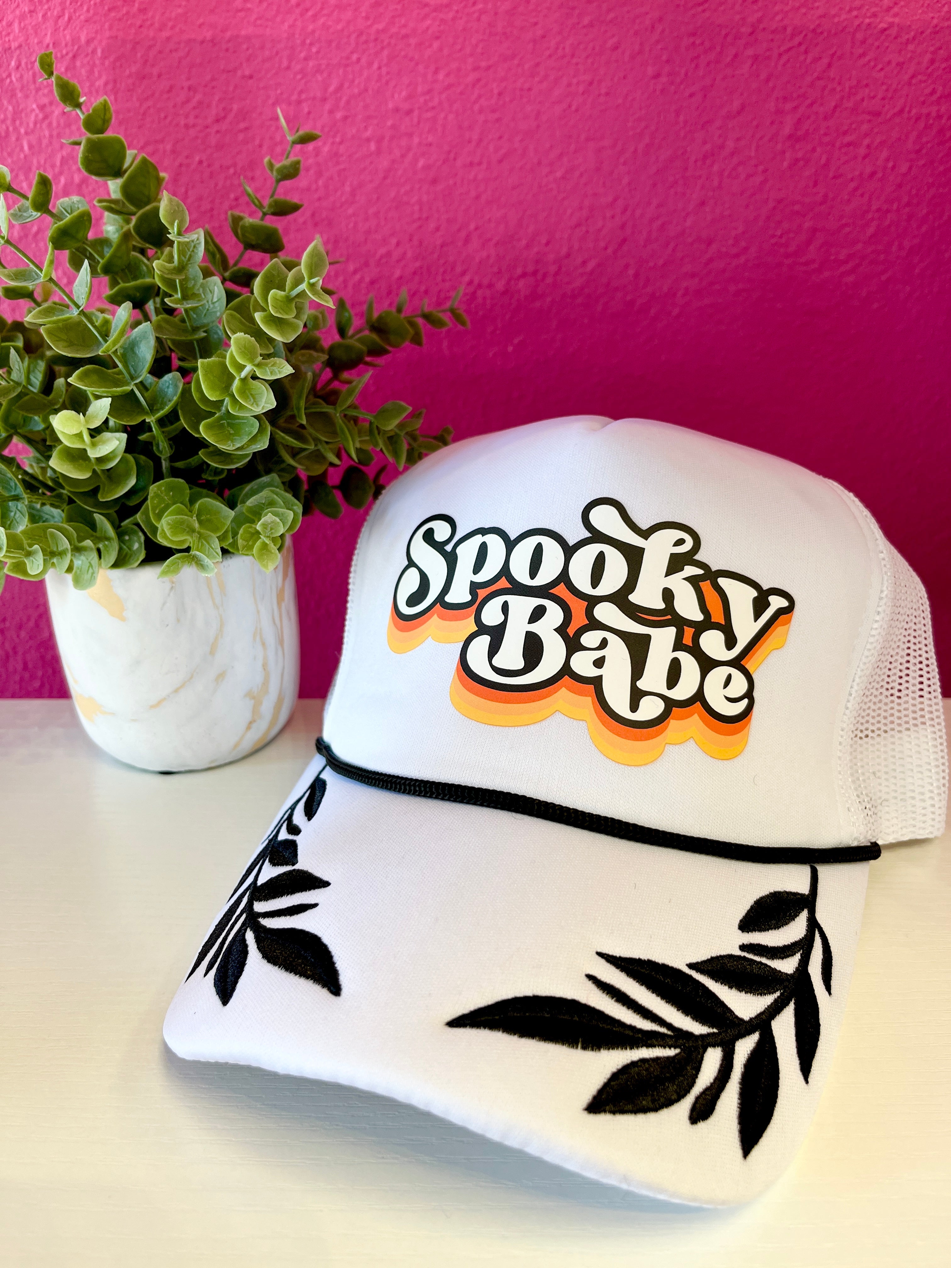 Show off your spooky style with the Spooky Babe White & Black Captain Hat! This fun trucker hat features a crisp white front and bold black design, perfect for adding a playful Halloween vibe to any outfit. Lightweight and comfortable, it’s the cutest way to keep the Halloween spirit alive while staying cool and stylish.