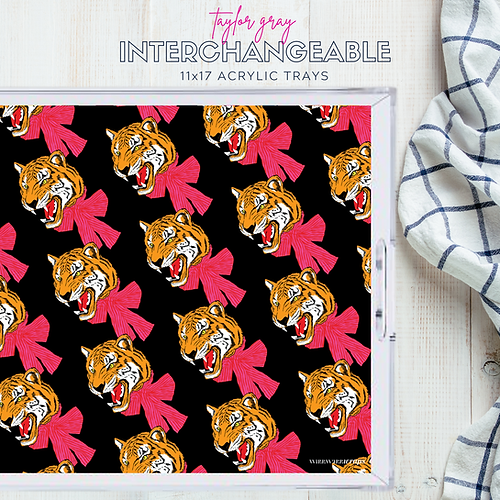 Acrylic trays are all the rage and are definitely on trend. Why should you settle for one design when you can have TEN designs and change them out on a whim? The TAYLOR GRAY acrylic tray is an extra-large 11x17 tray that perfectly fit our 11x17 insert designs. The pocket on the bottom of the tray allows the inserts to be easily interchanged and protected. 10 Different Inserts for your Tray.