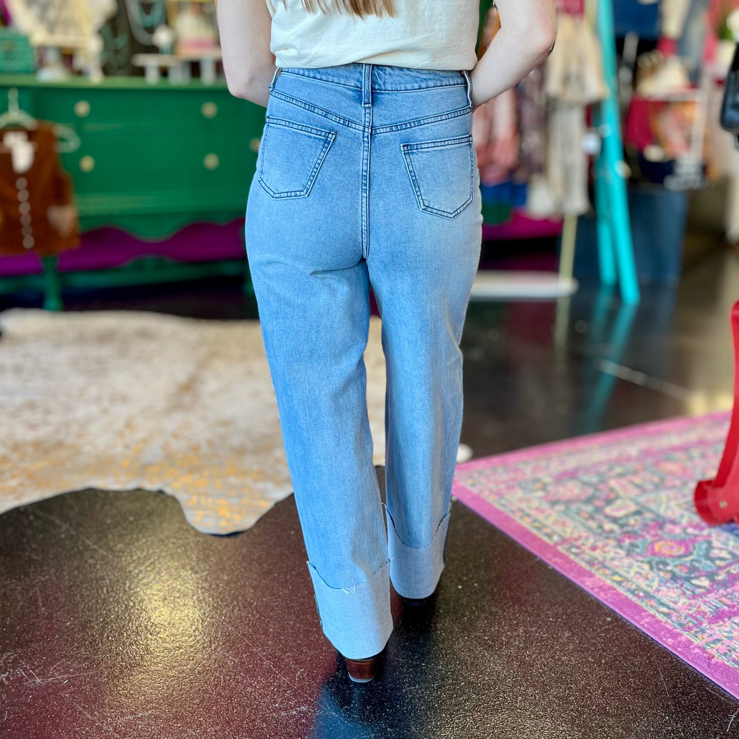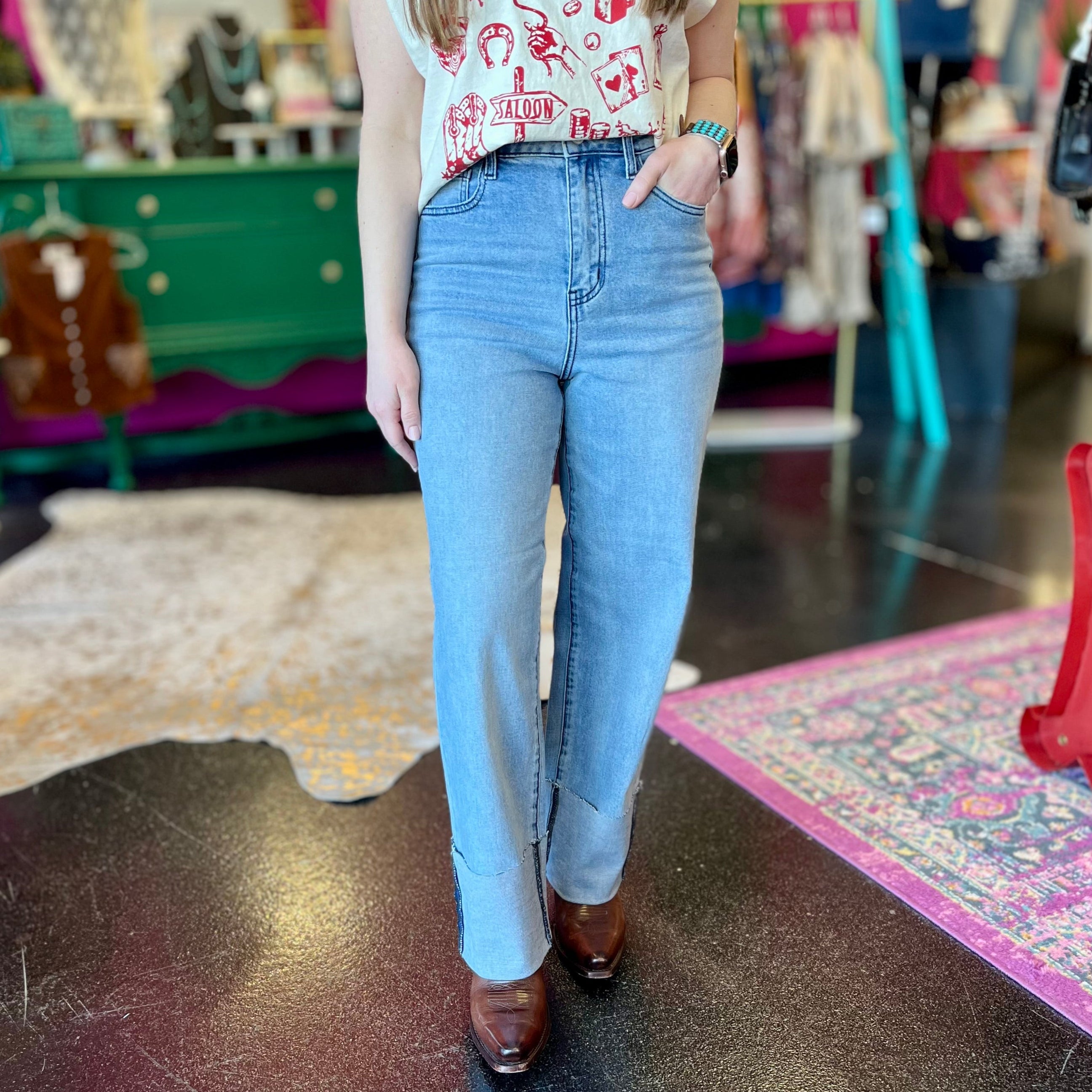 Introducing our Wisteria Straight Cuffed Denim Jeans! Stay on-trend and cute with these stretchy, cuffed jeans. Show off your playful style in these must-have denim jeans.