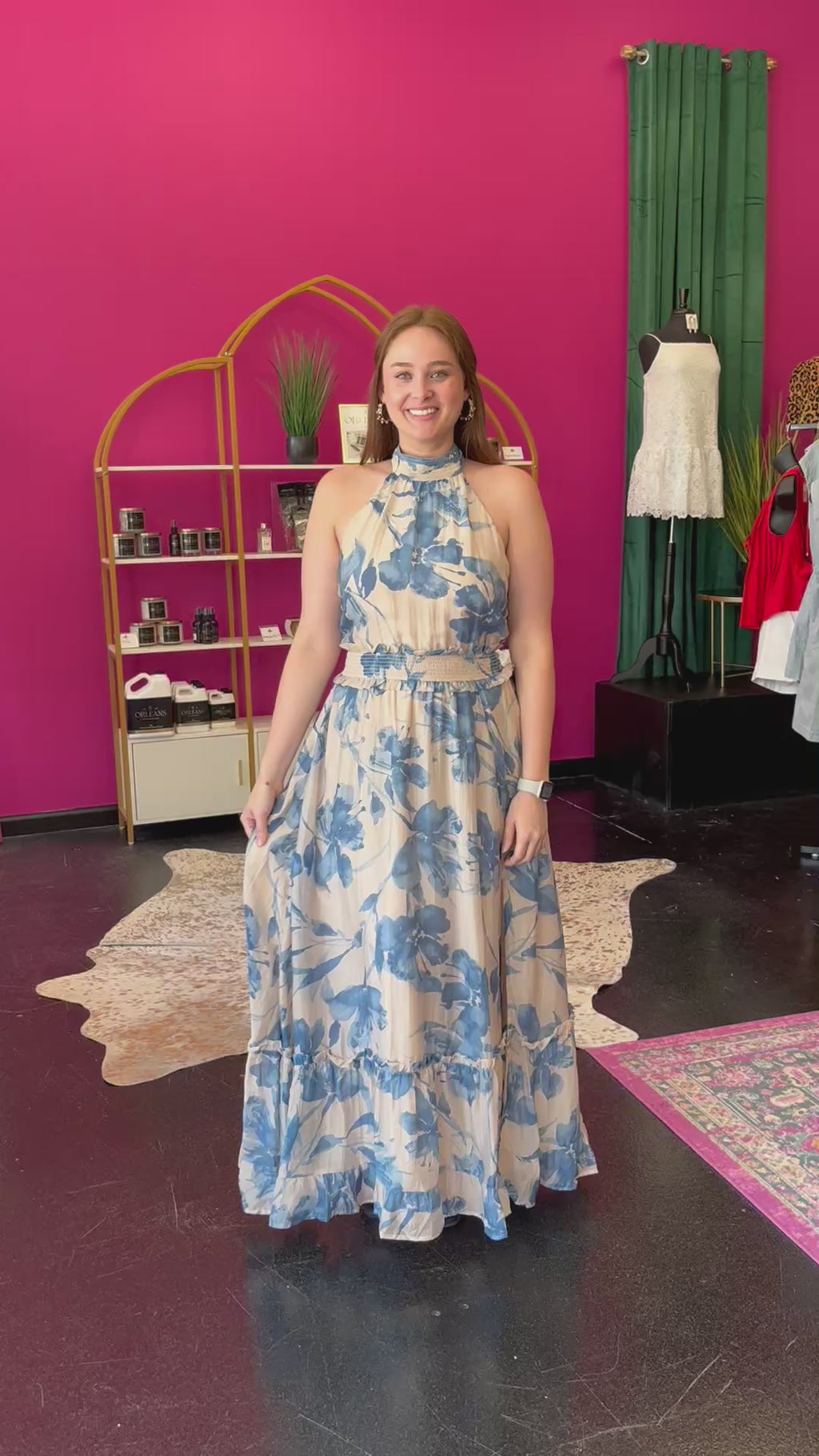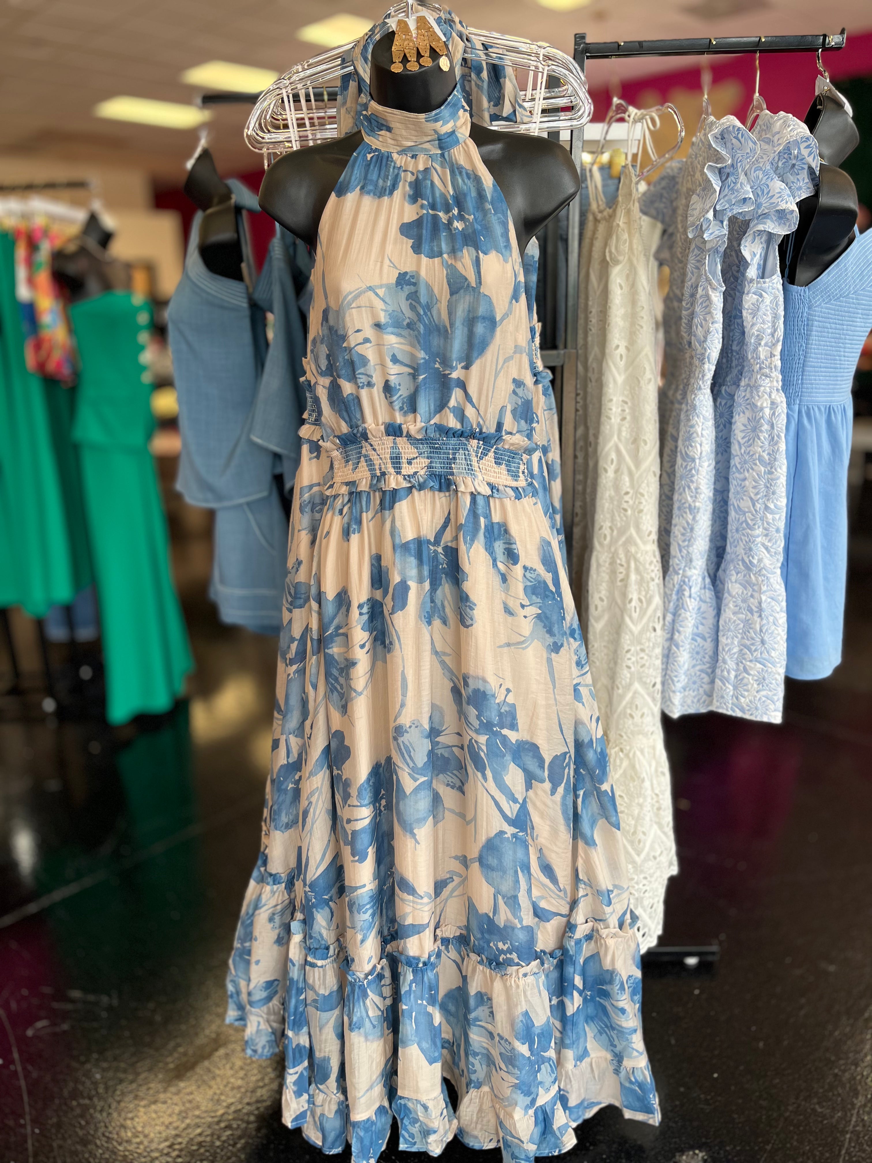 Step into summer with this Cream & Blue Floral Maxi Dress, featuring a charming denim blue floral print that’s perfect for vacations or summer weddings. Its flowing silhouette keeps you comfortable and stylish, making every moment feel like a sunny getaway. Embrace the playful vibe and let this dress be your go-to for effortless, breezy elegance.