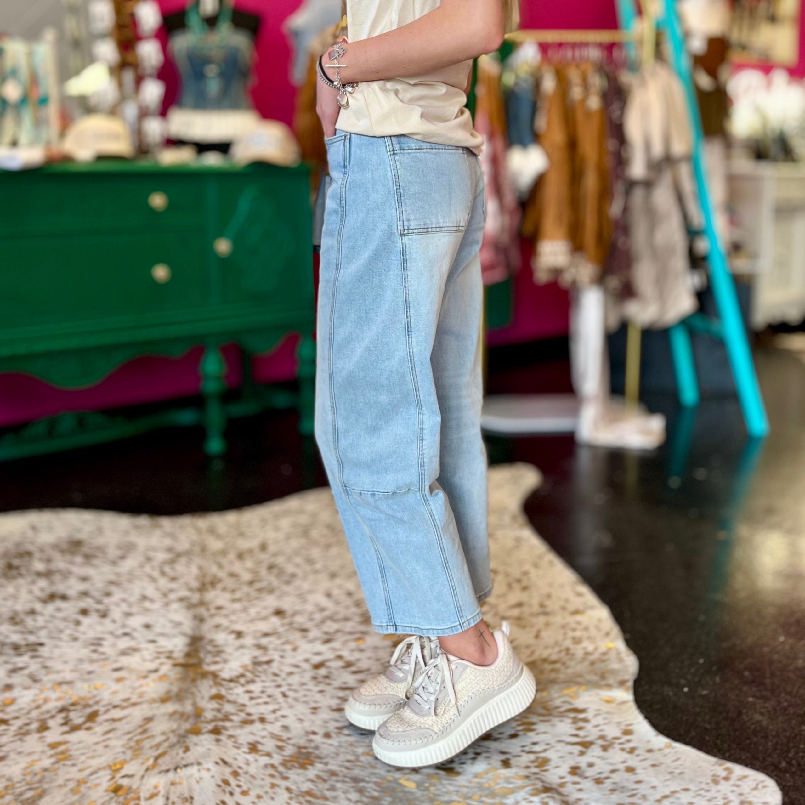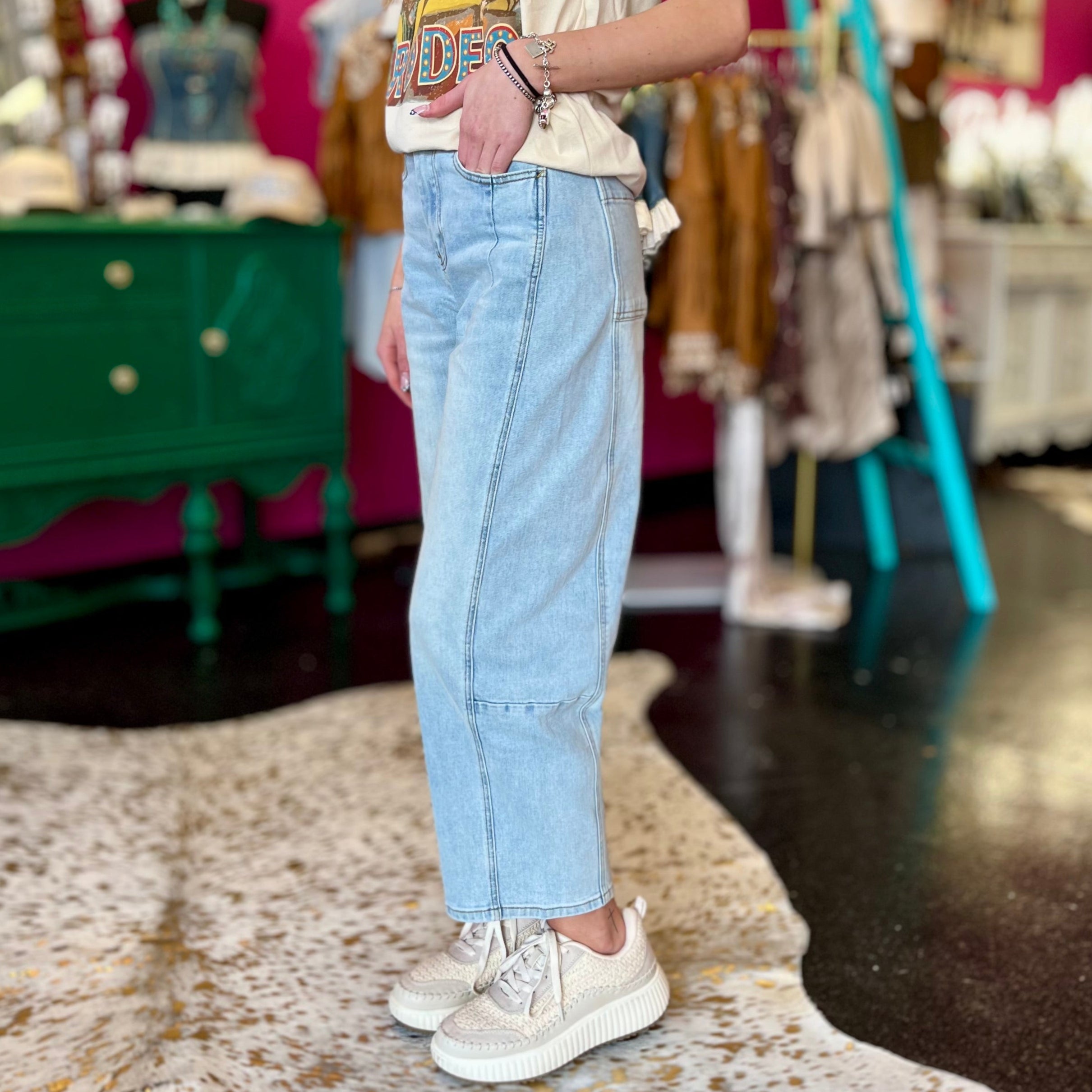Introducing our Ice Denim Hybrid Barrel Jeans, perfect for every occasion! The unique ice blue color is sure to make a statement while the hybrid barrel design allows for endless styling options. Get ready to turn heads and make a fashion statement with these versatile denim jeans.