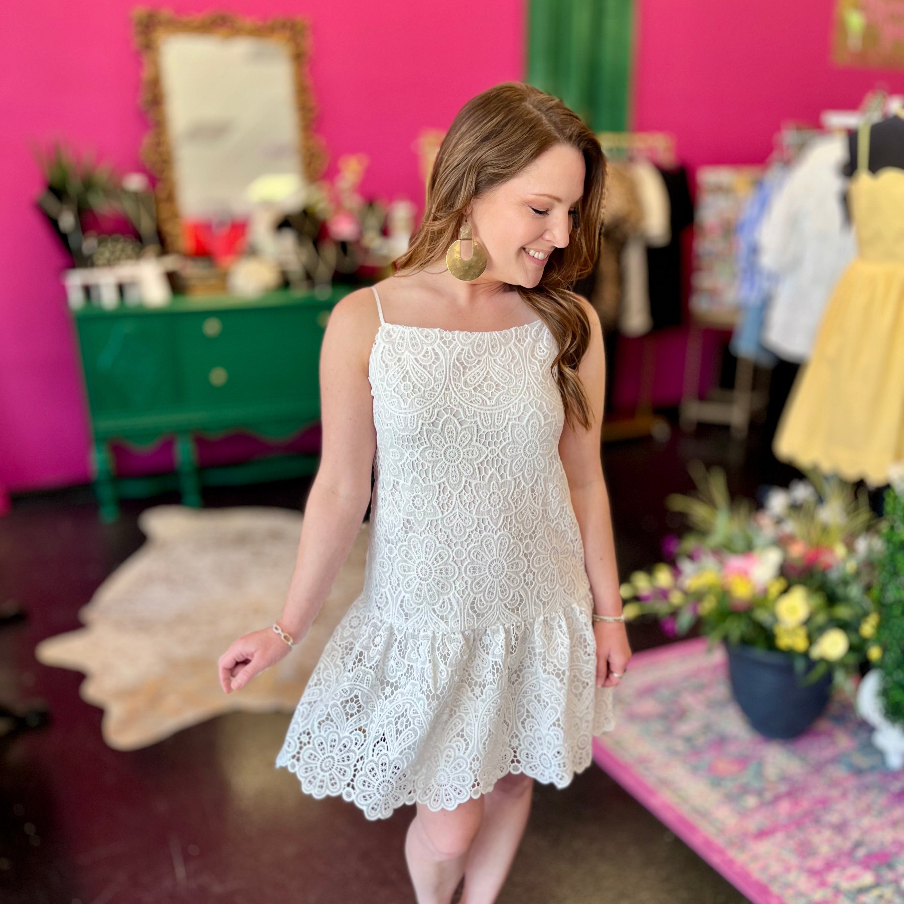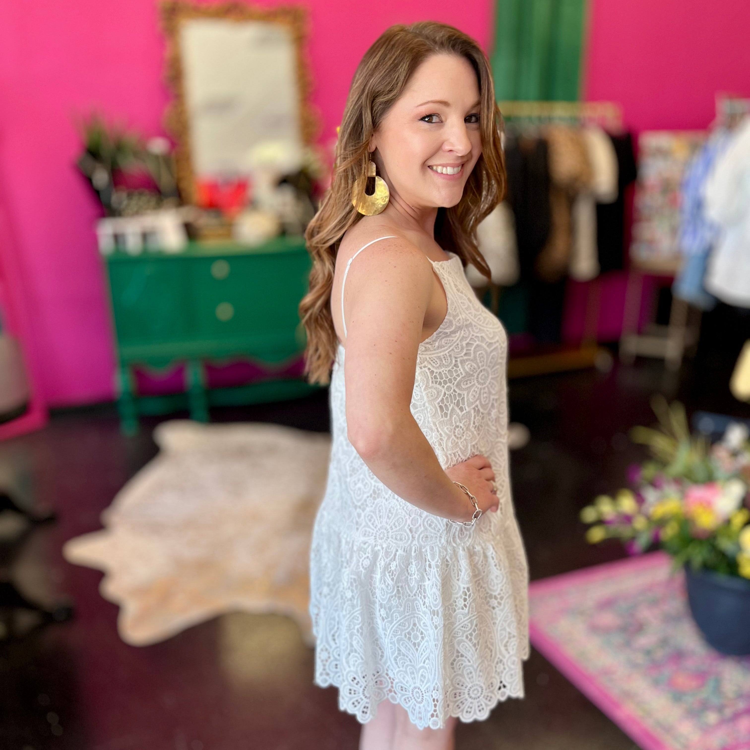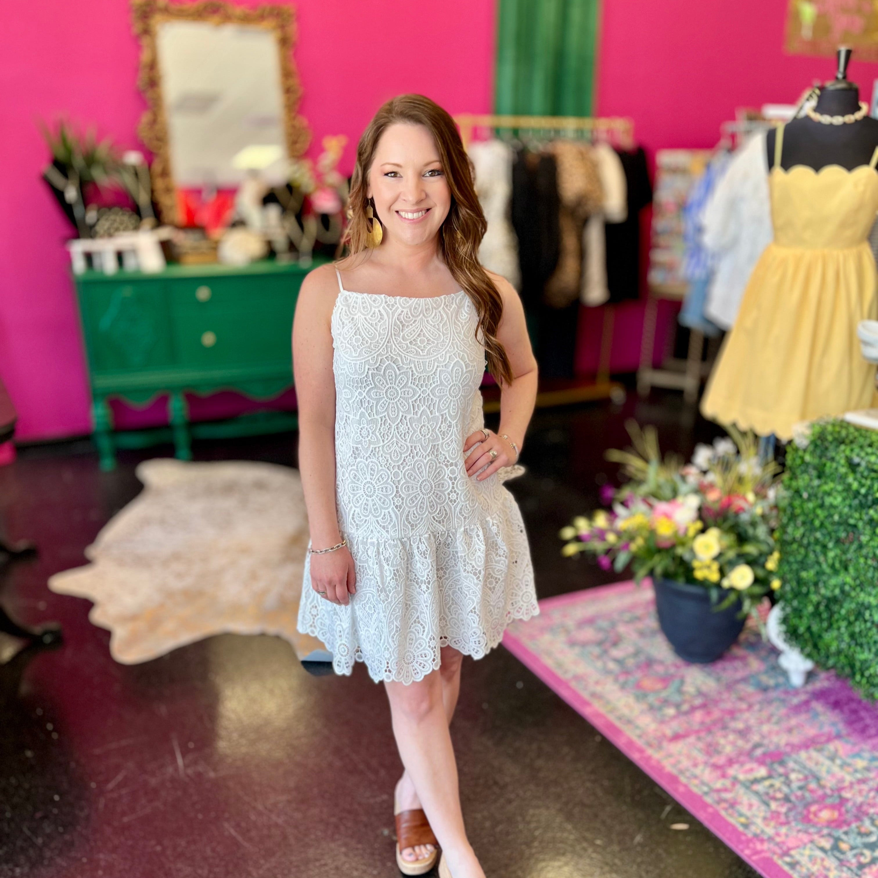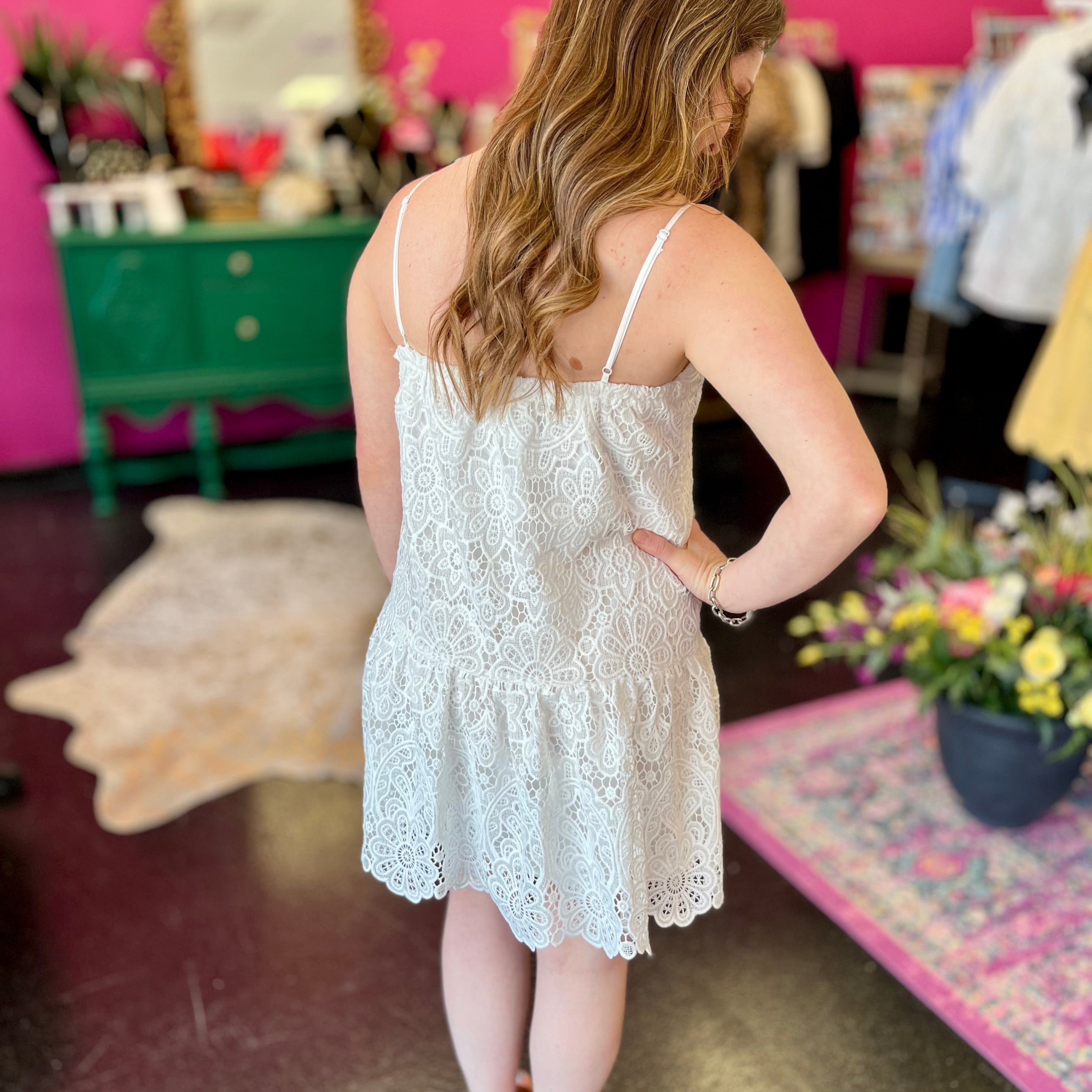 White Lace Ruffle Bottom Dress