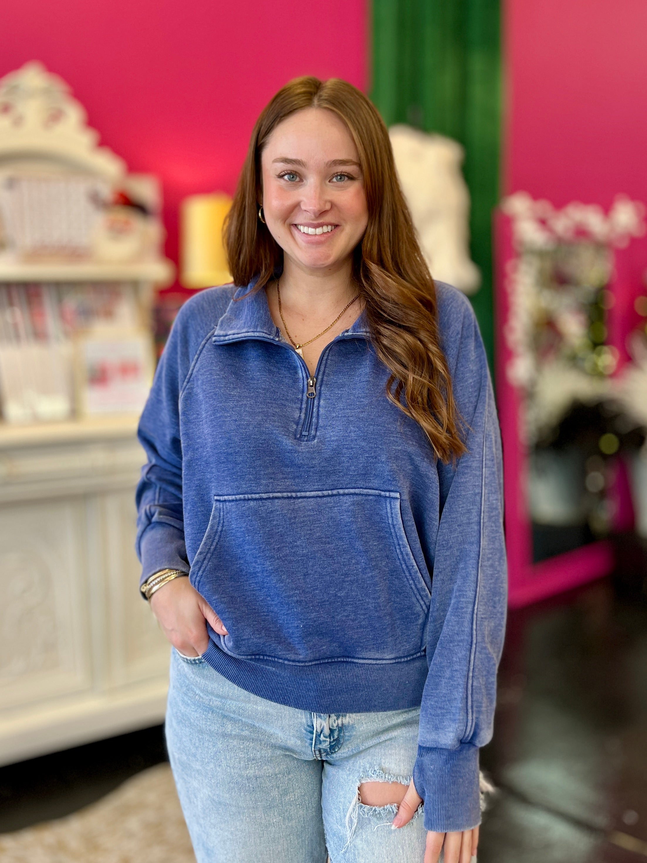 Meet your new favorite layering piece! The Ellie Navy Quarter Zip Pullover Top is as adorable as it is comfortable, featuring a super soft fabric that feels like a warm hug. What really sets this top apart? A totally unique back design that'll have everyone asking where you got it. Perfect for casual days when you want to look effortlessly put-together without sacrificing coziness. Throw it on over a tee, pair it with your favorite jeans, and you're ready to go!