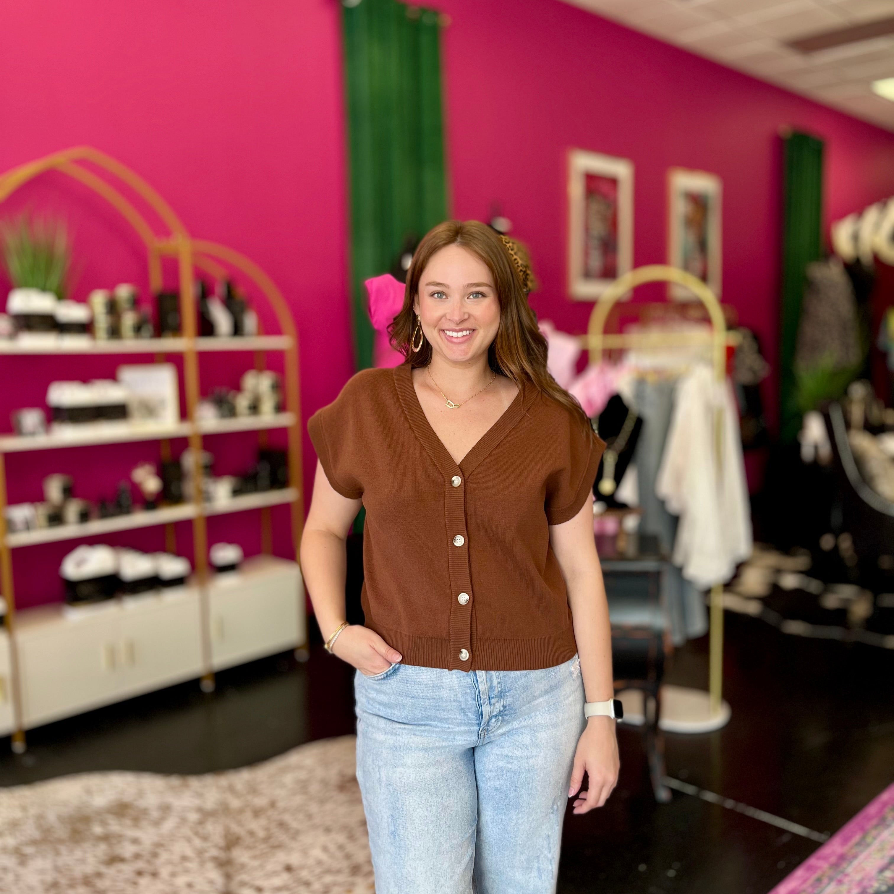 Cozy meets cute in this Espresso Button Up Knit Top, the perfect lightweight sweater for fall. Its soft knit fabric keeps you comfy without weighing you down, making it ideal for layering on crisp autumn days. Button up and embrace sweater weather with a playful twist!