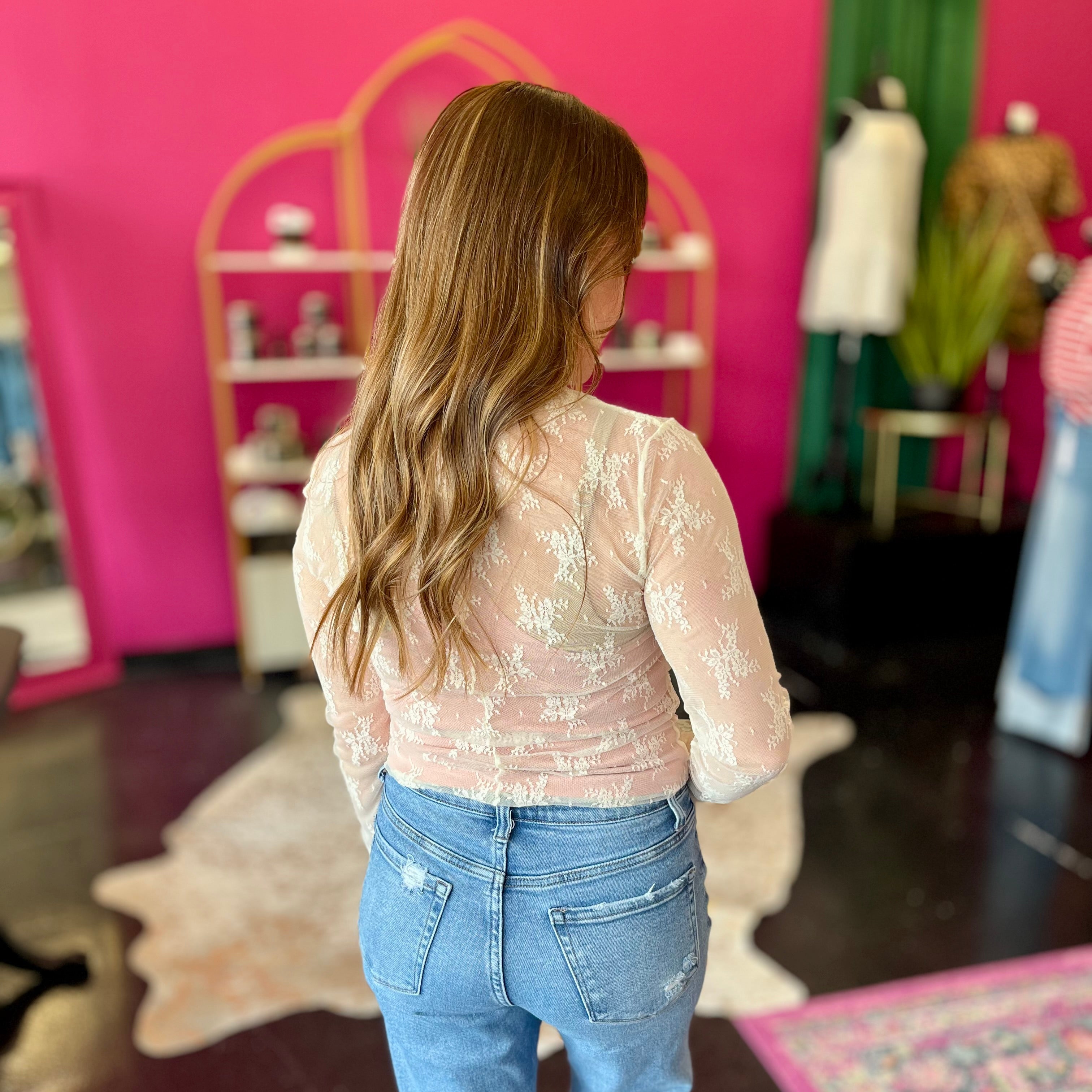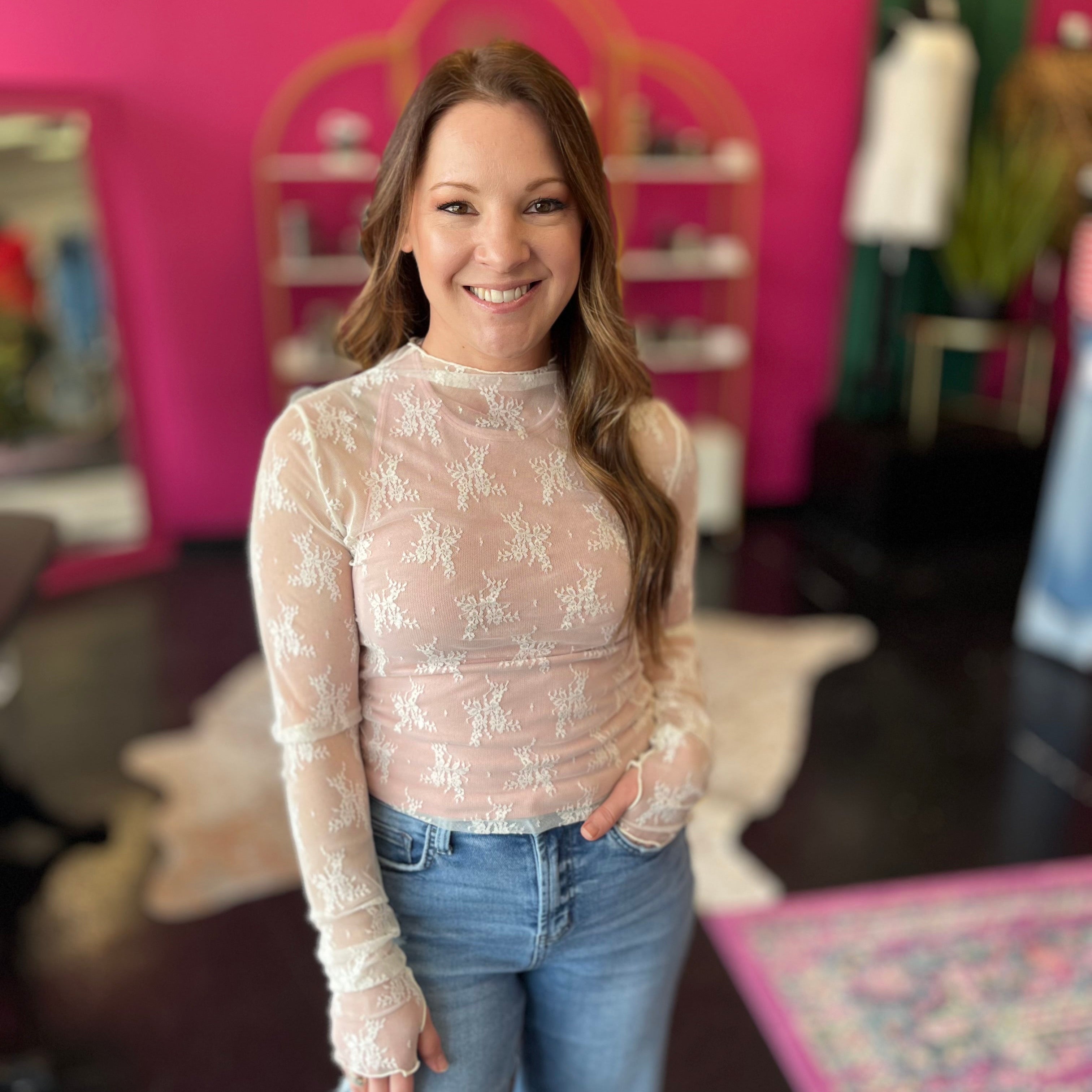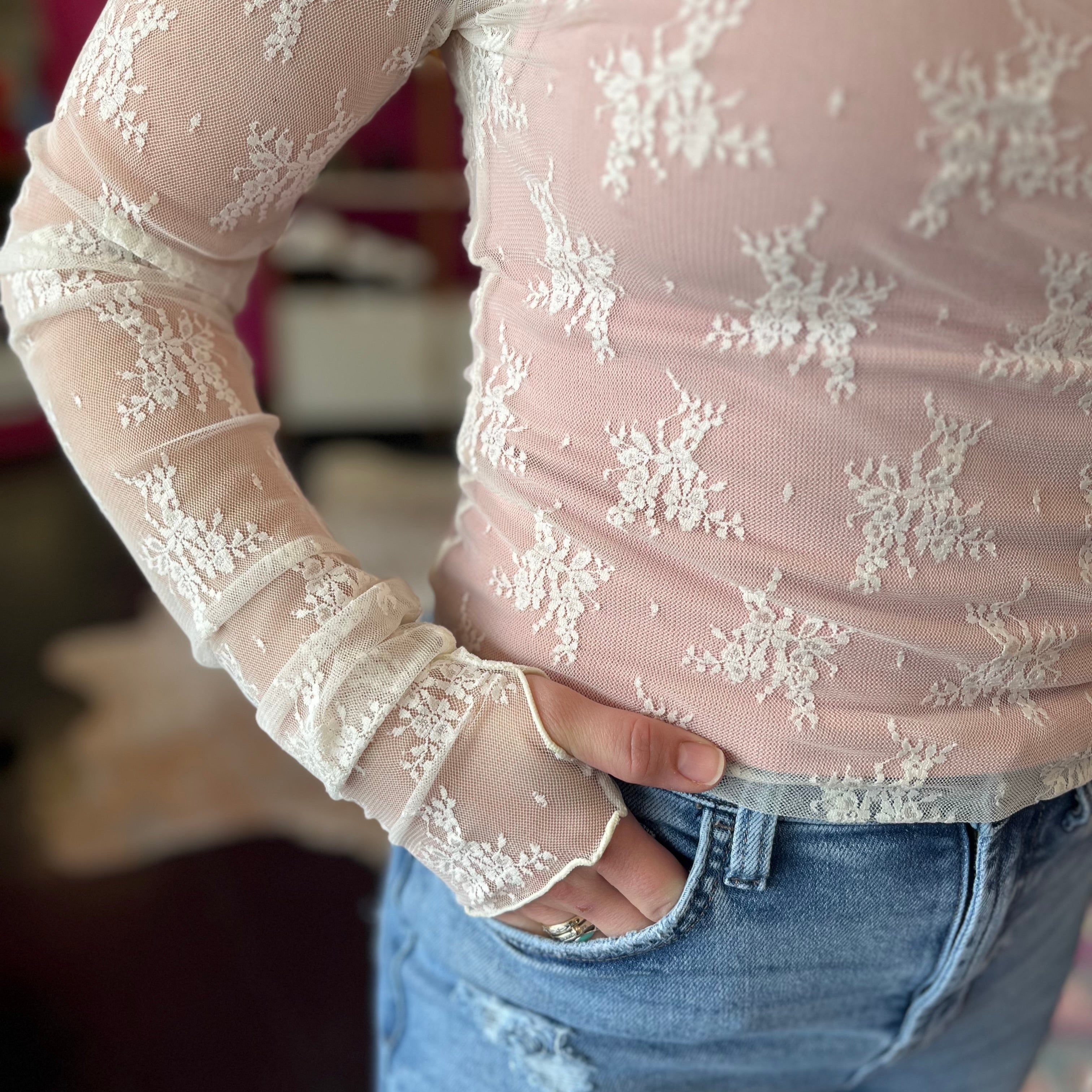 Get ready to add some chic and quirky vibes to your wardrobe with our Ivory Cream Shear Top! Whether you layer it or wear it on its own, you'll love the lace design that adds a touch of elegance and playfulness. Perfect for those who don't take themselves too seriously.