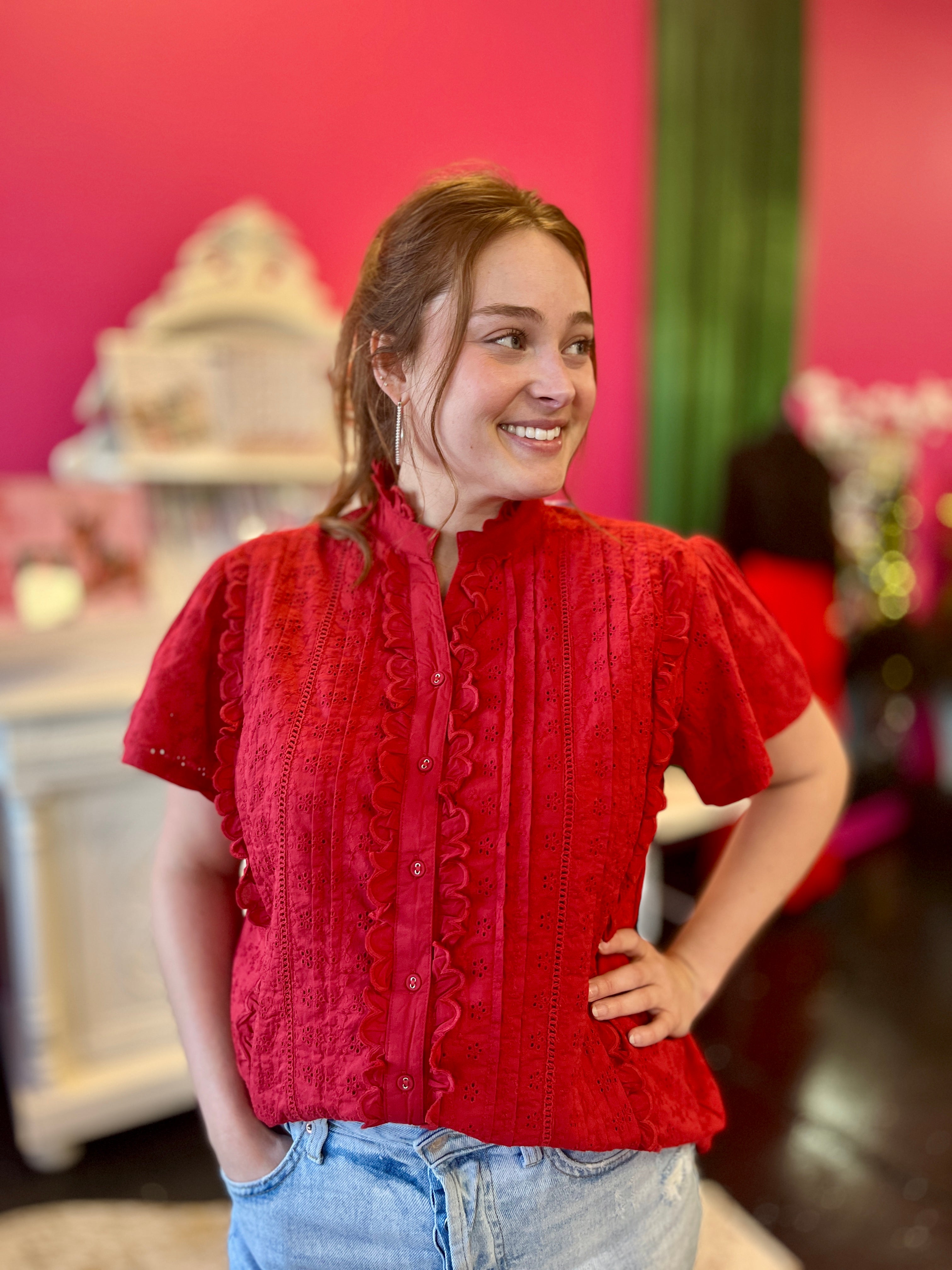 Lilly Red Eyelet Top