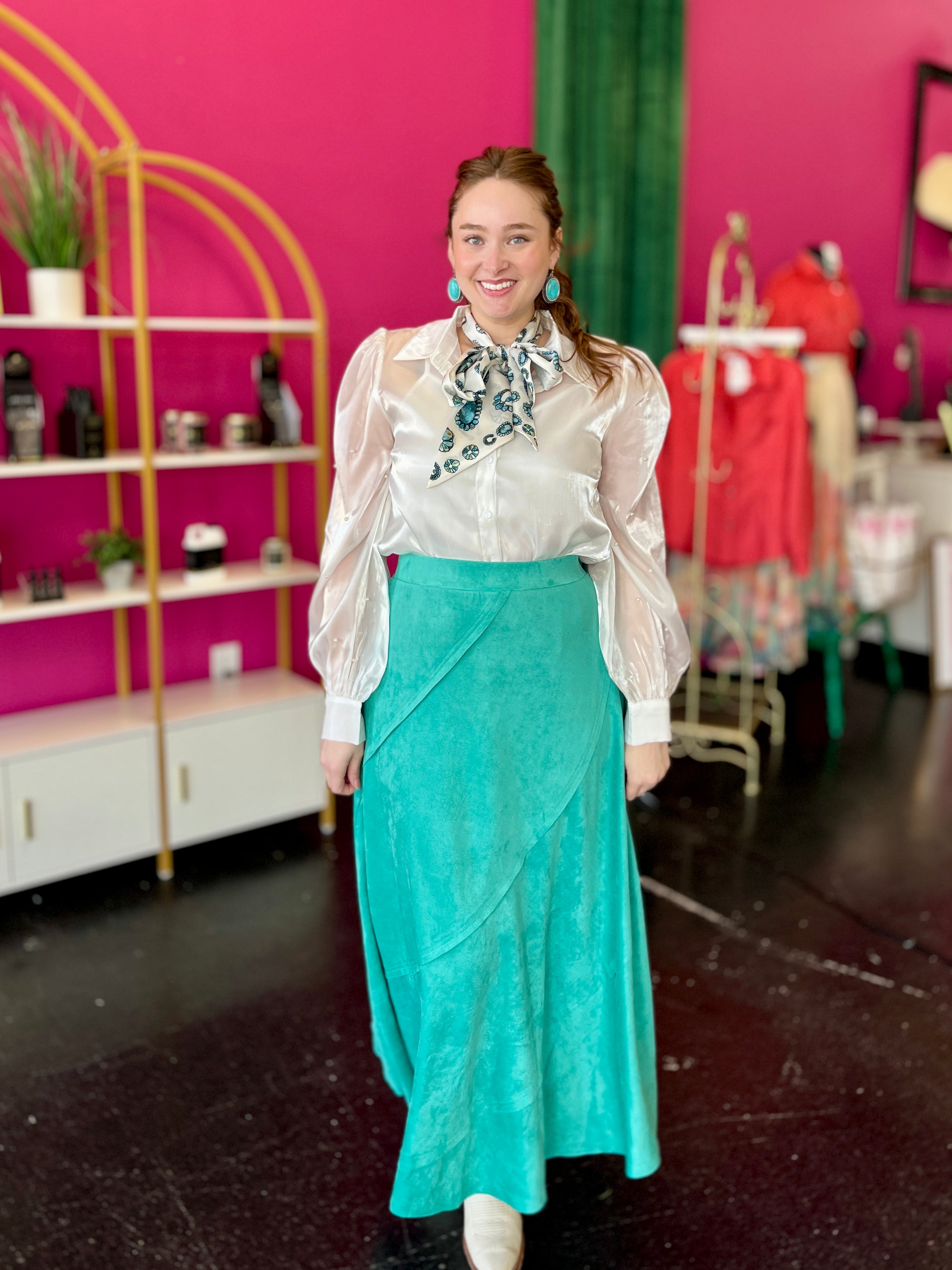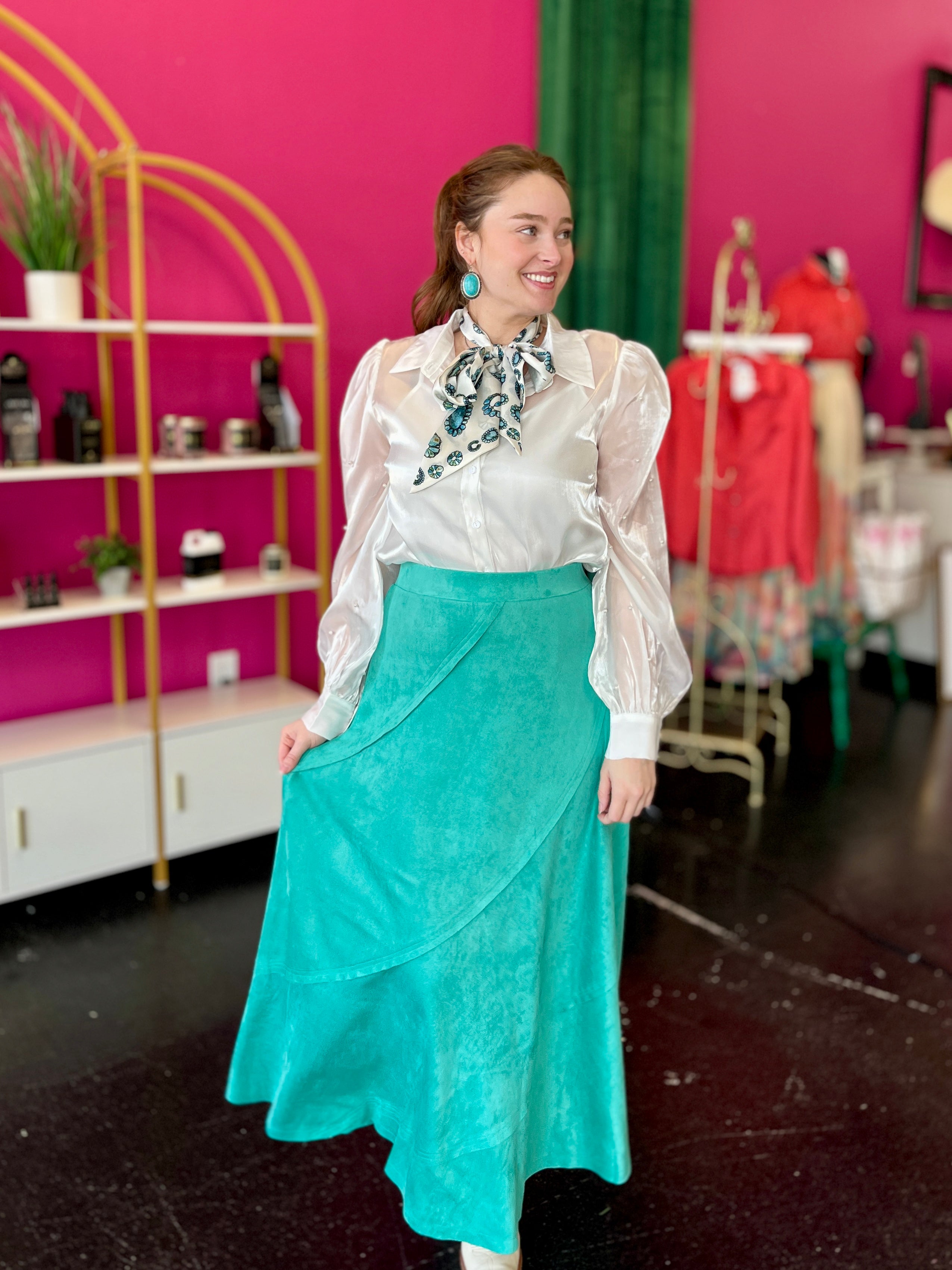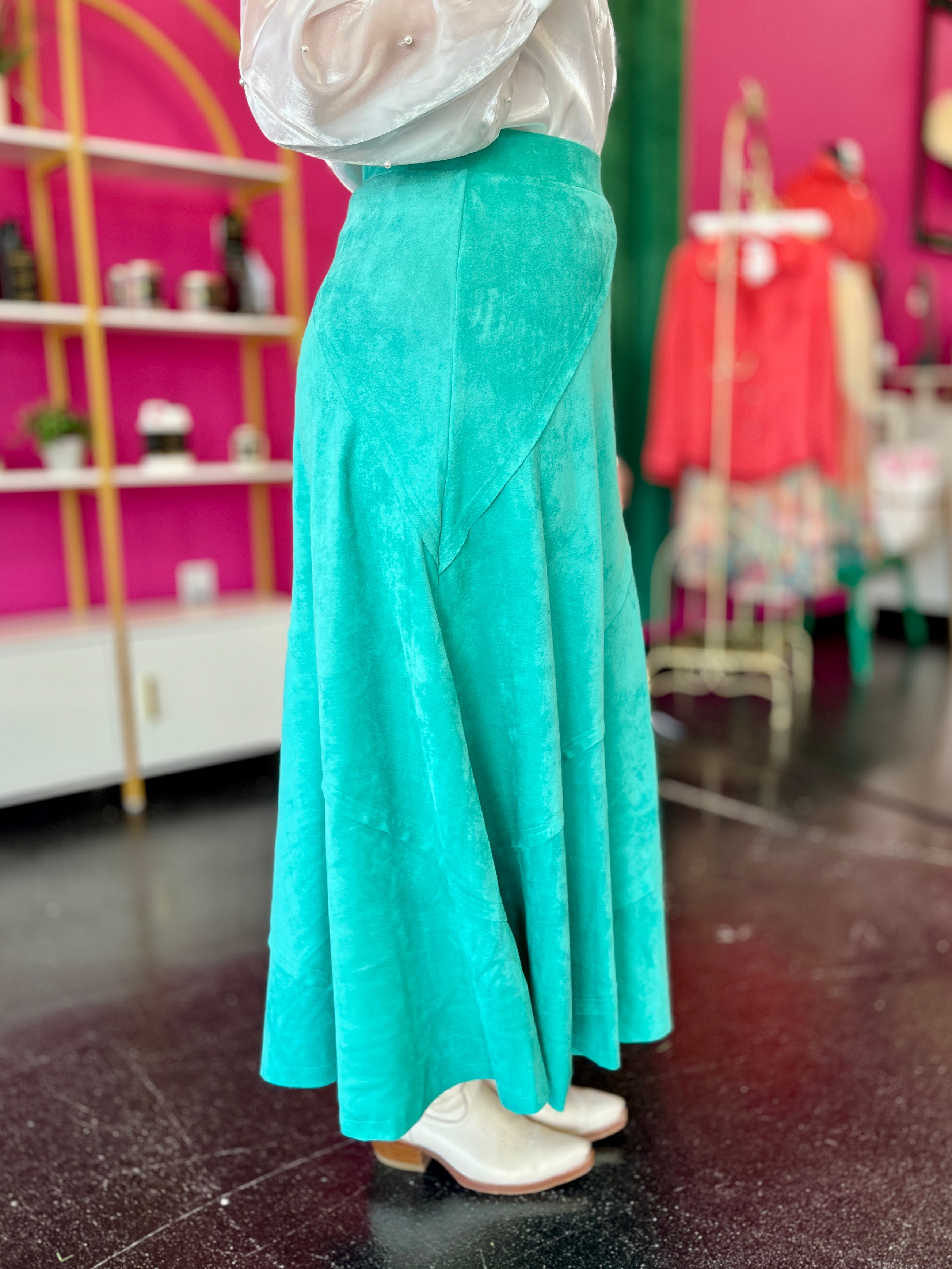 Turquoise Faux Suede Maxi Skirt