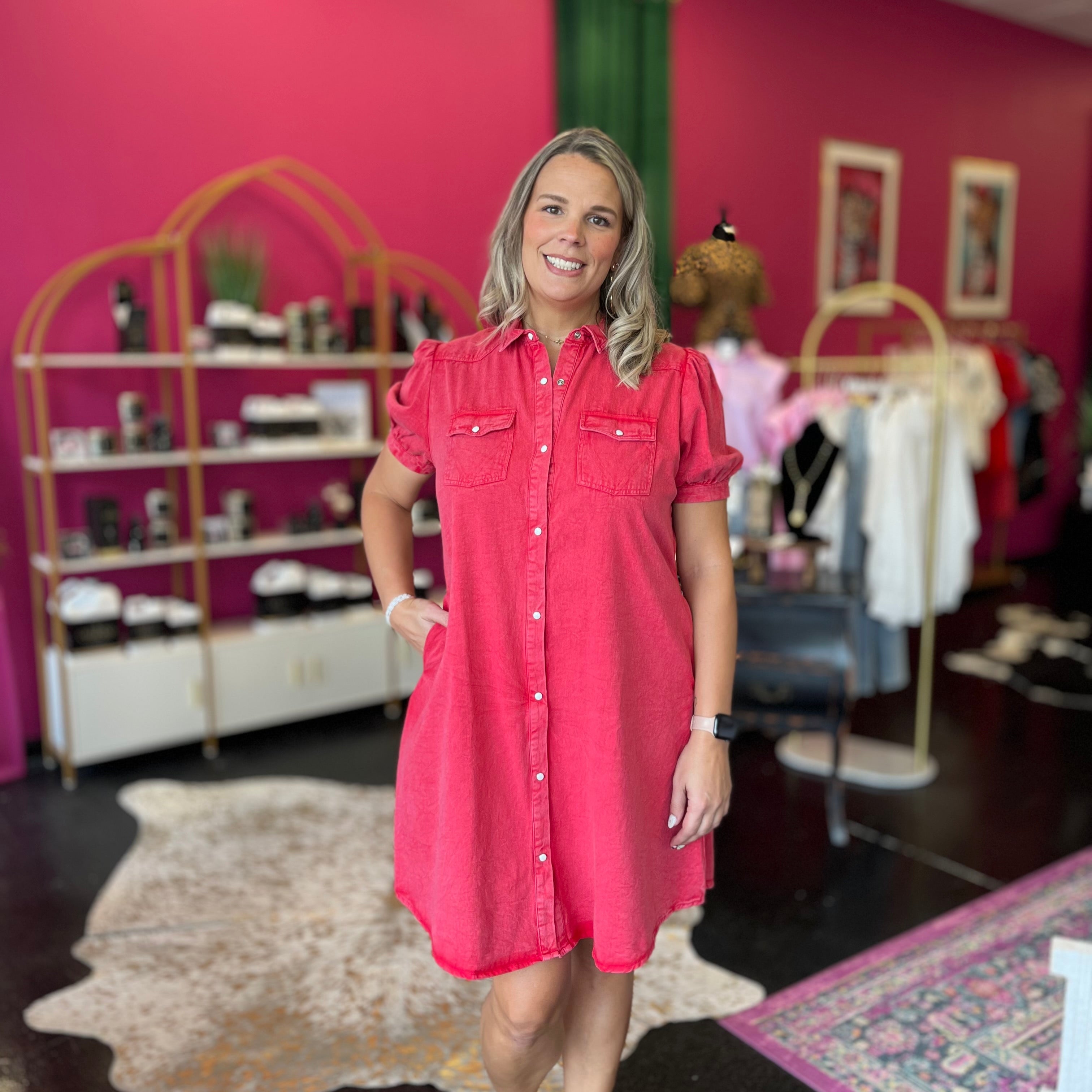 This Annie Washed Red Denim Dress is a total showstopper! Its vibrant red hue adds a fun pop of color, making it your go-to outfit all year round in the South. Lightweight and comfy, it’s perfect for sunny days or layered up for cooler evenings. Ready to turn heads wherever you go!