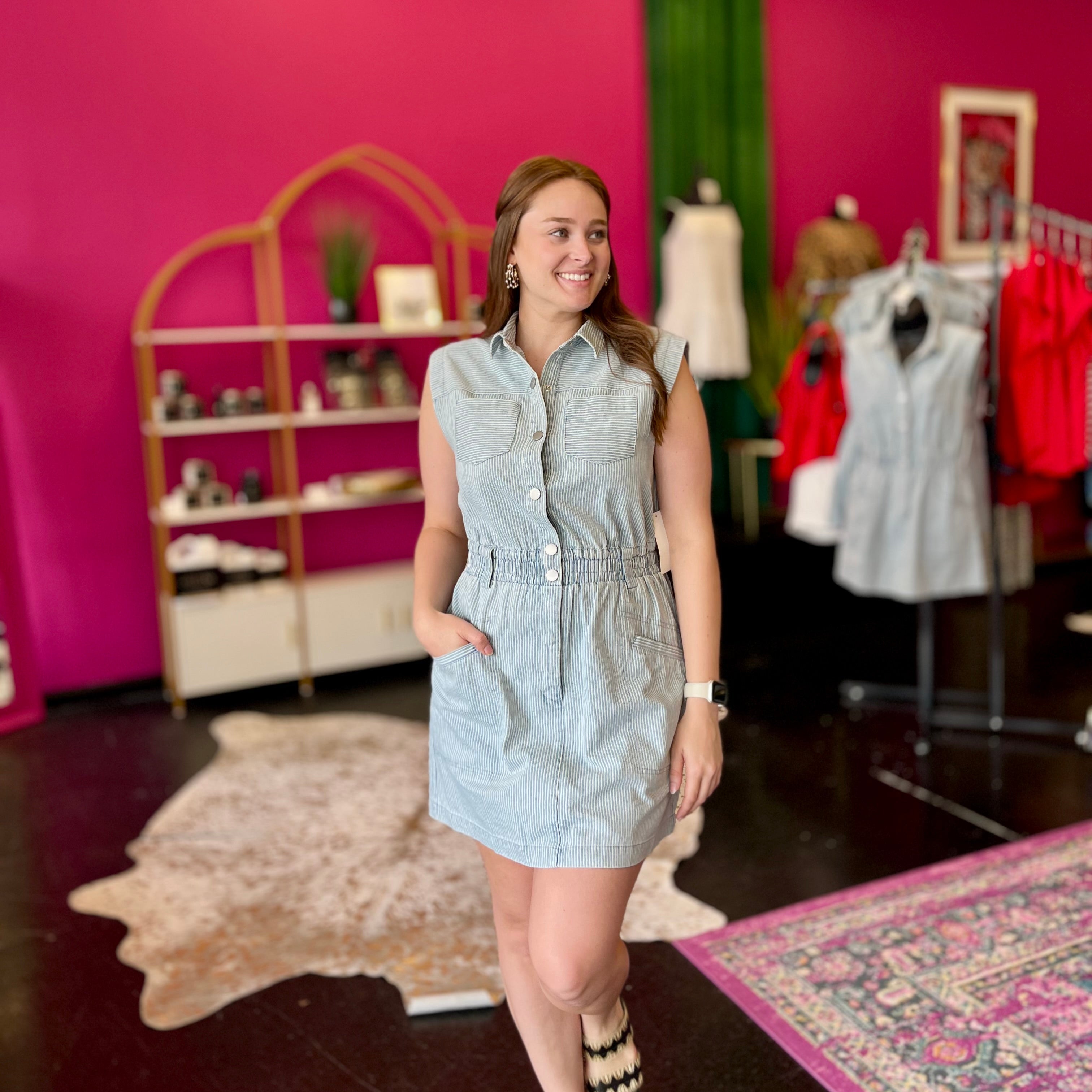 This Denim Striped Pocket Dress is your new go-to for effortless style. Easy to wear and featuring a fun denim striped design, it adds a playful touch to any outfit. Perfect for casual days when you want comfort without sacrificing charm.