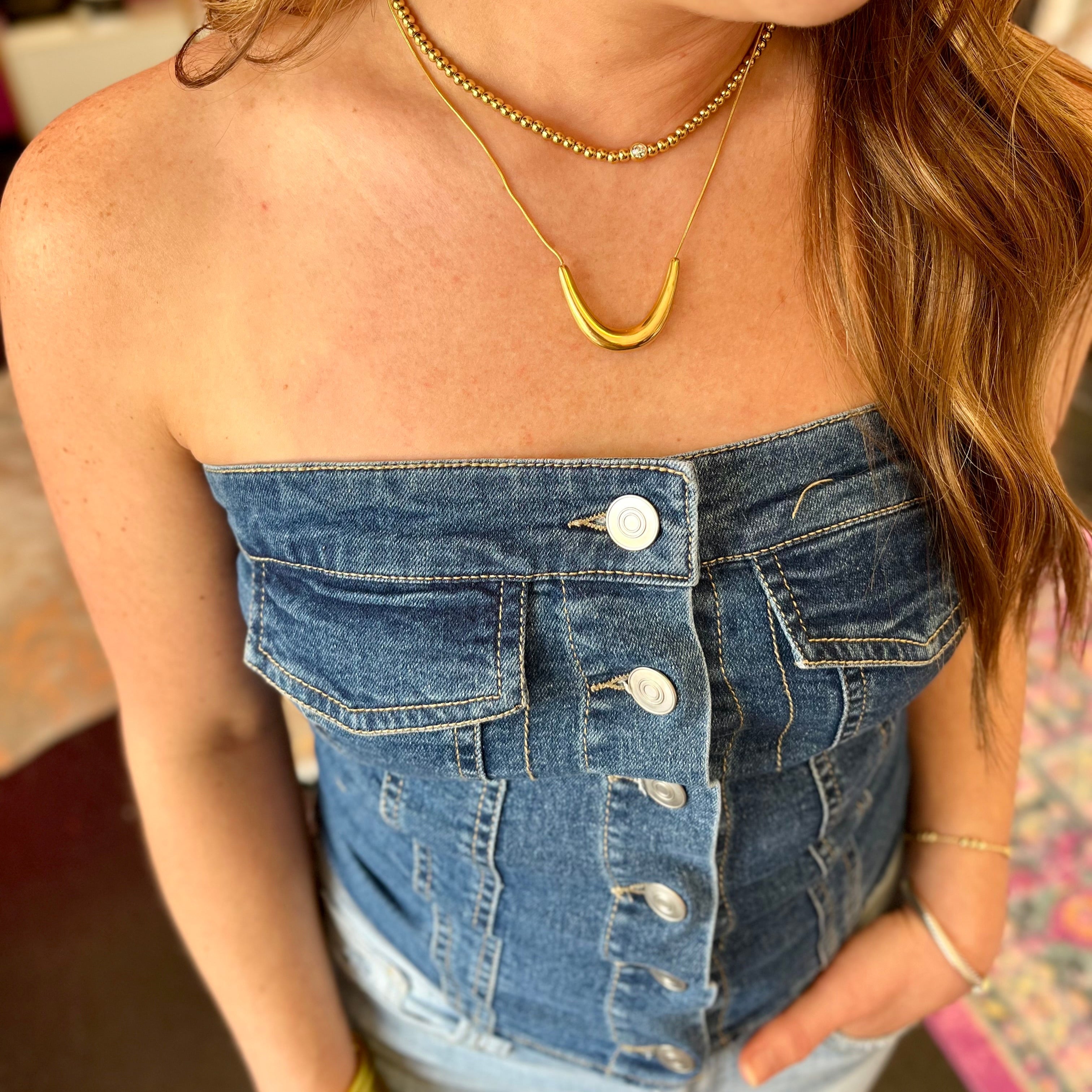 - Denim Strapless Top