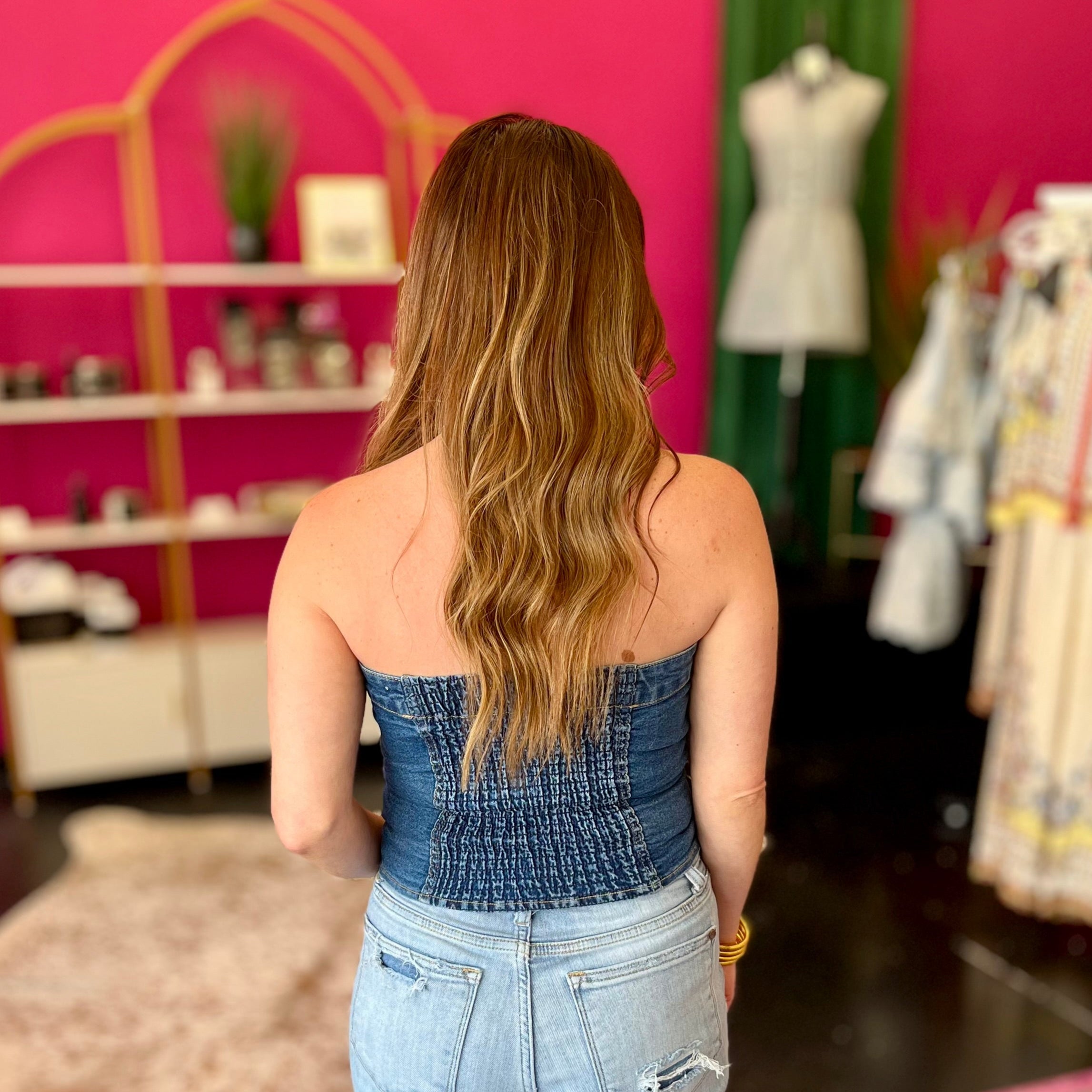 Denim Stretch Strapless Top