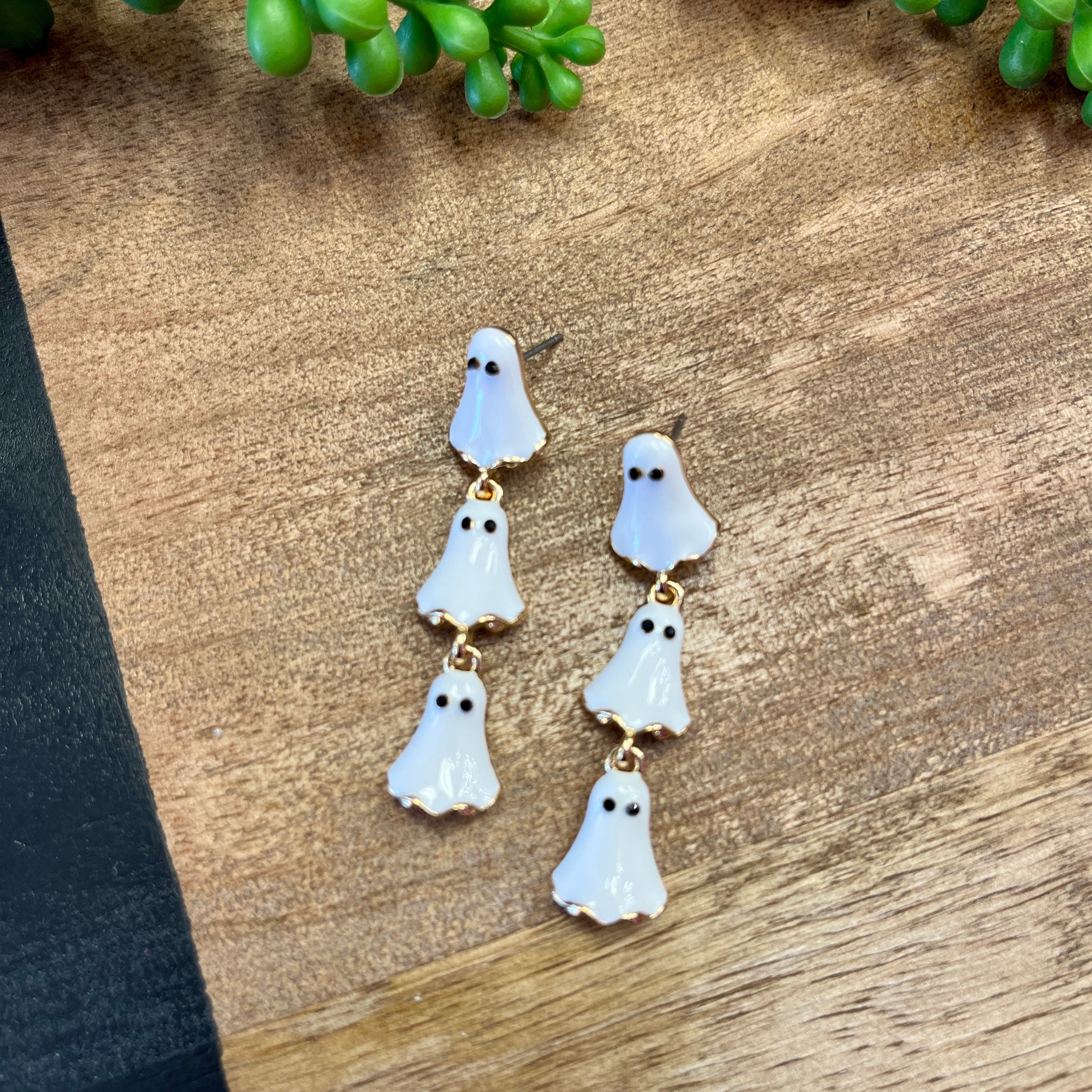 Get into the Halloween spirit with these 3 Ghost Dangle Earrings. Cute and a little spooky, they add a fun touch to your outfit while keeping things lighthearted. Perfect for celebrating the season with a playful ghostly vibe!