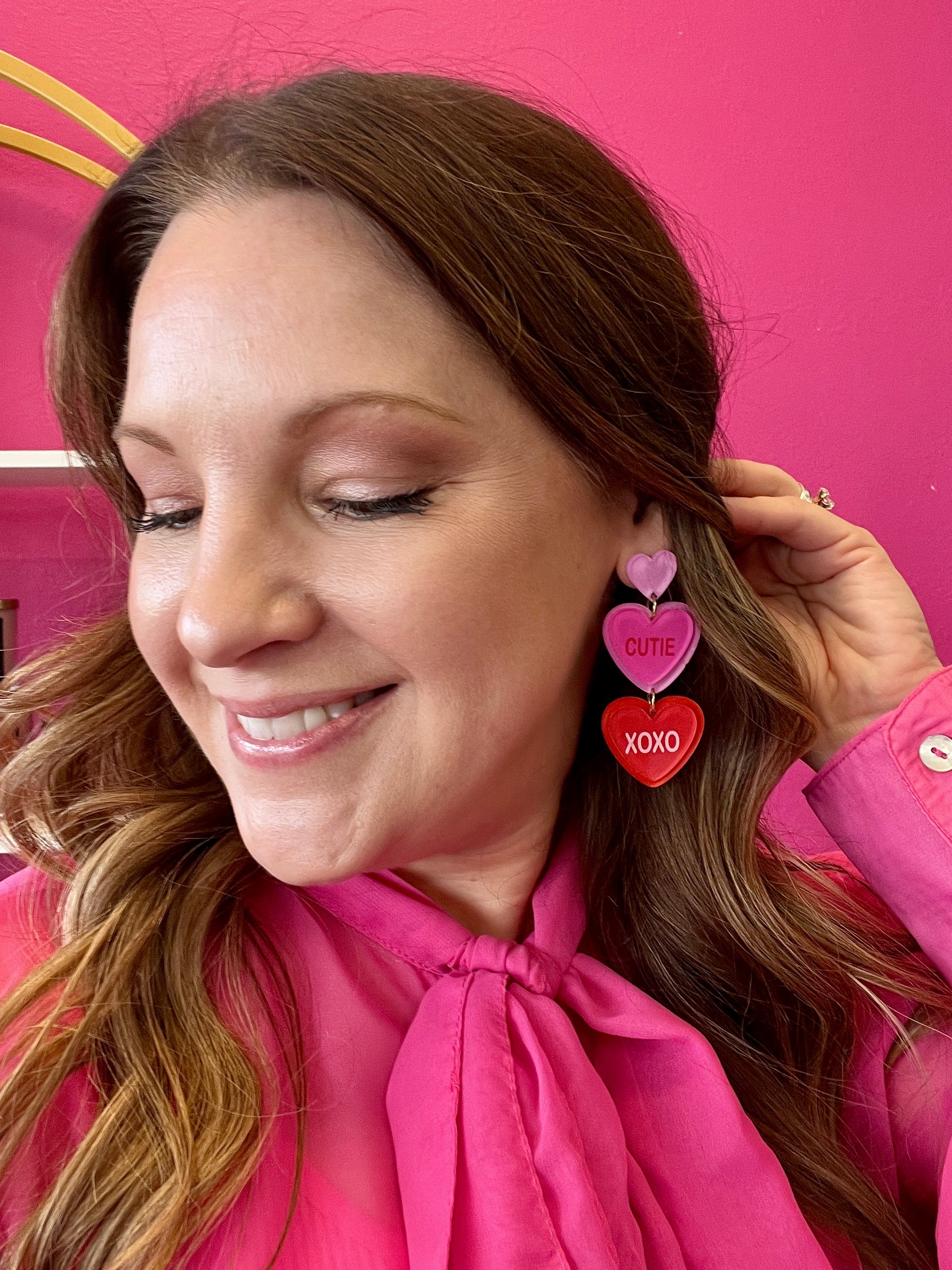 - 3 Heart Earrings with Cutie and XOXO on hearts