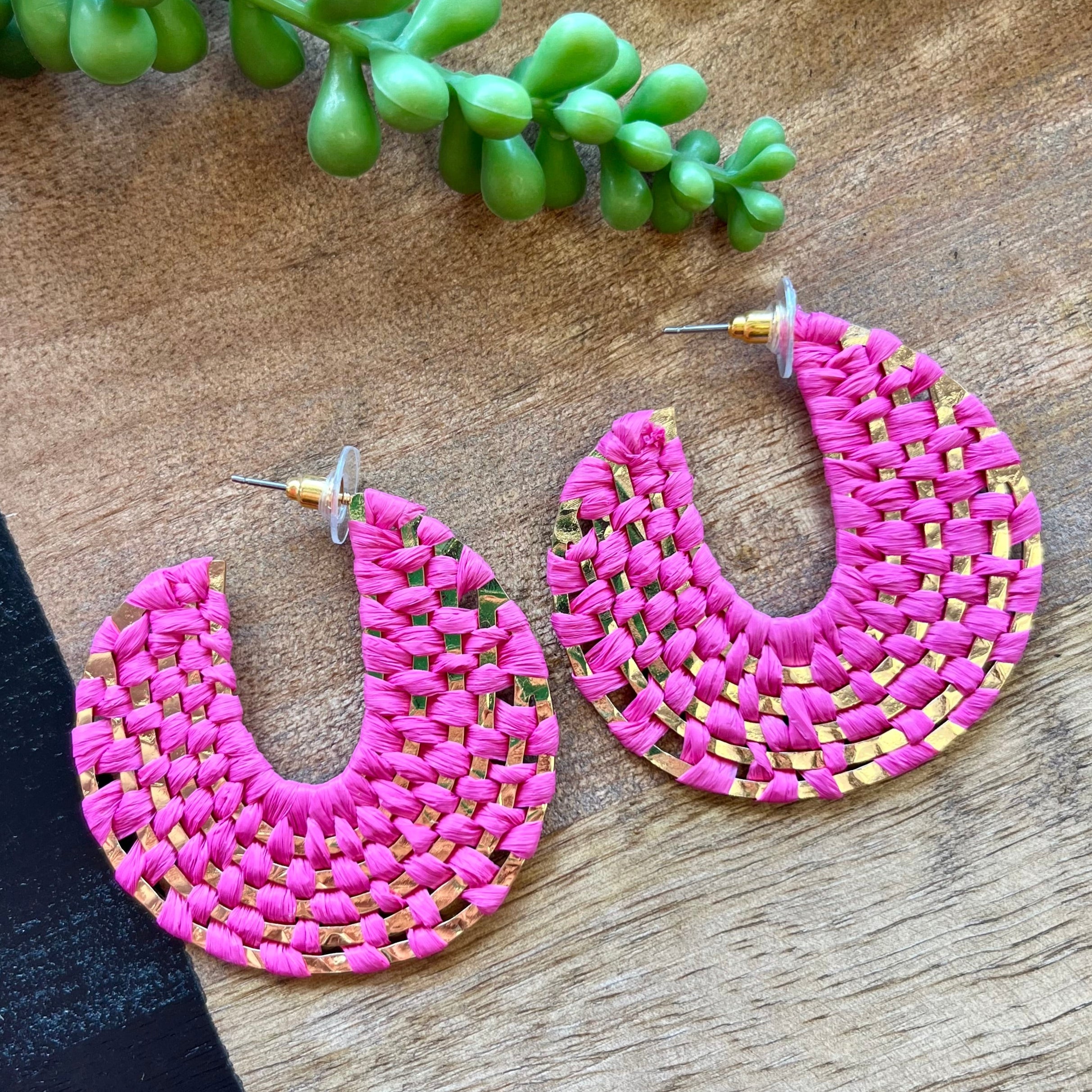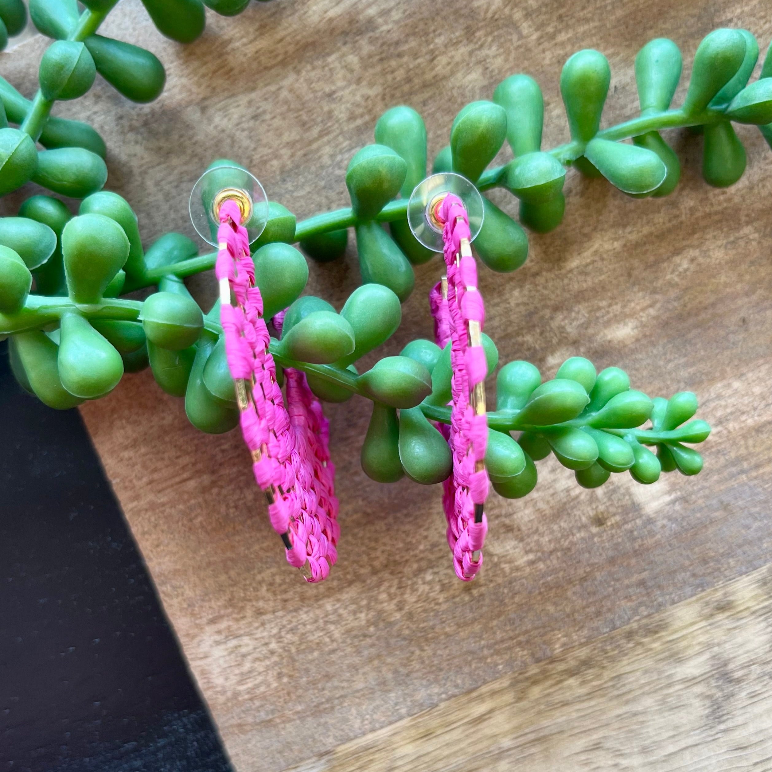 Escape to paradise with these trendy Hot Pink Raffia Woven Big Circle Hoop Earrings. The perfect accessory for your next vacay, these cuties will add a touch of fun to any outfit.