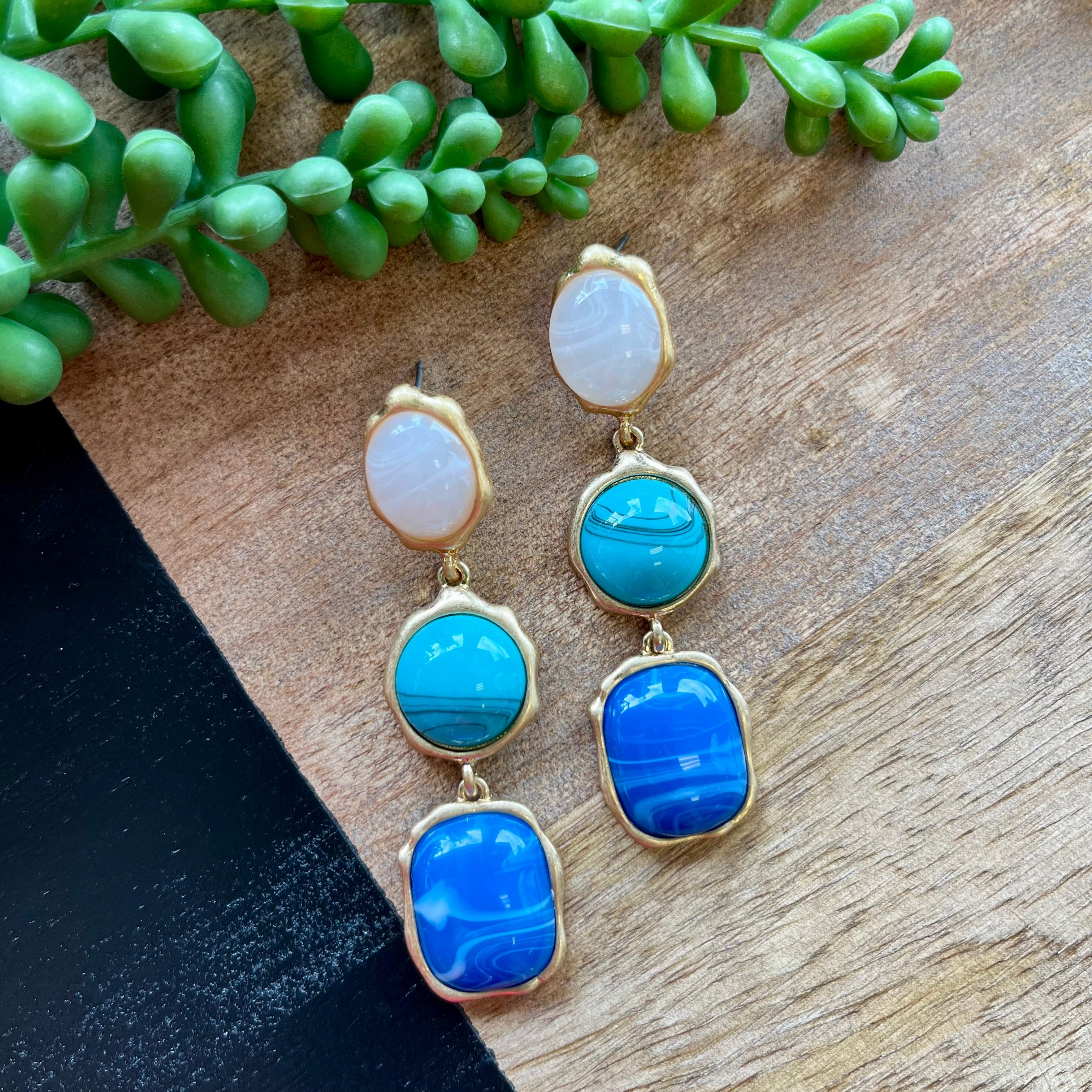 • Ivory, Turq, & Blue Stone with Gold Trim