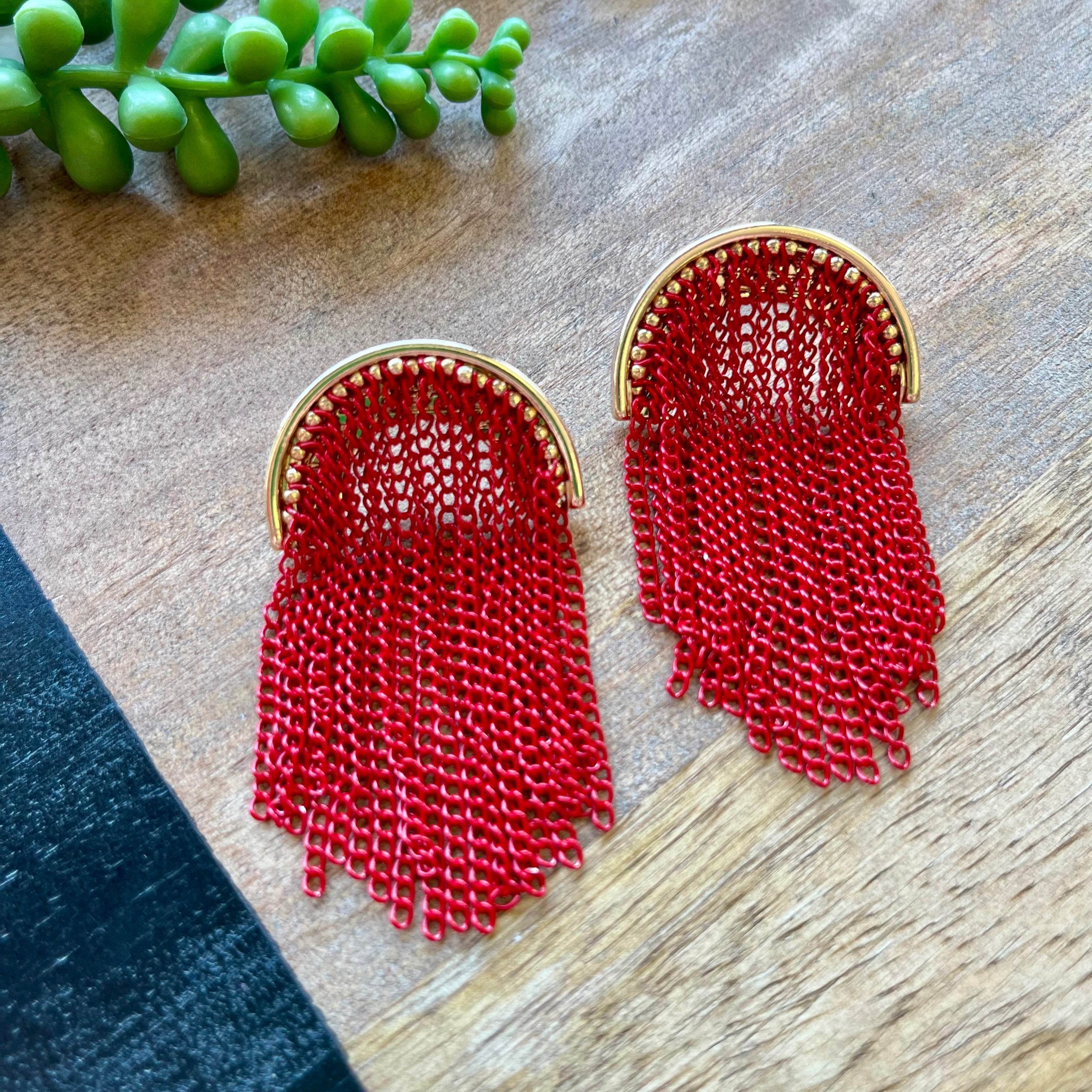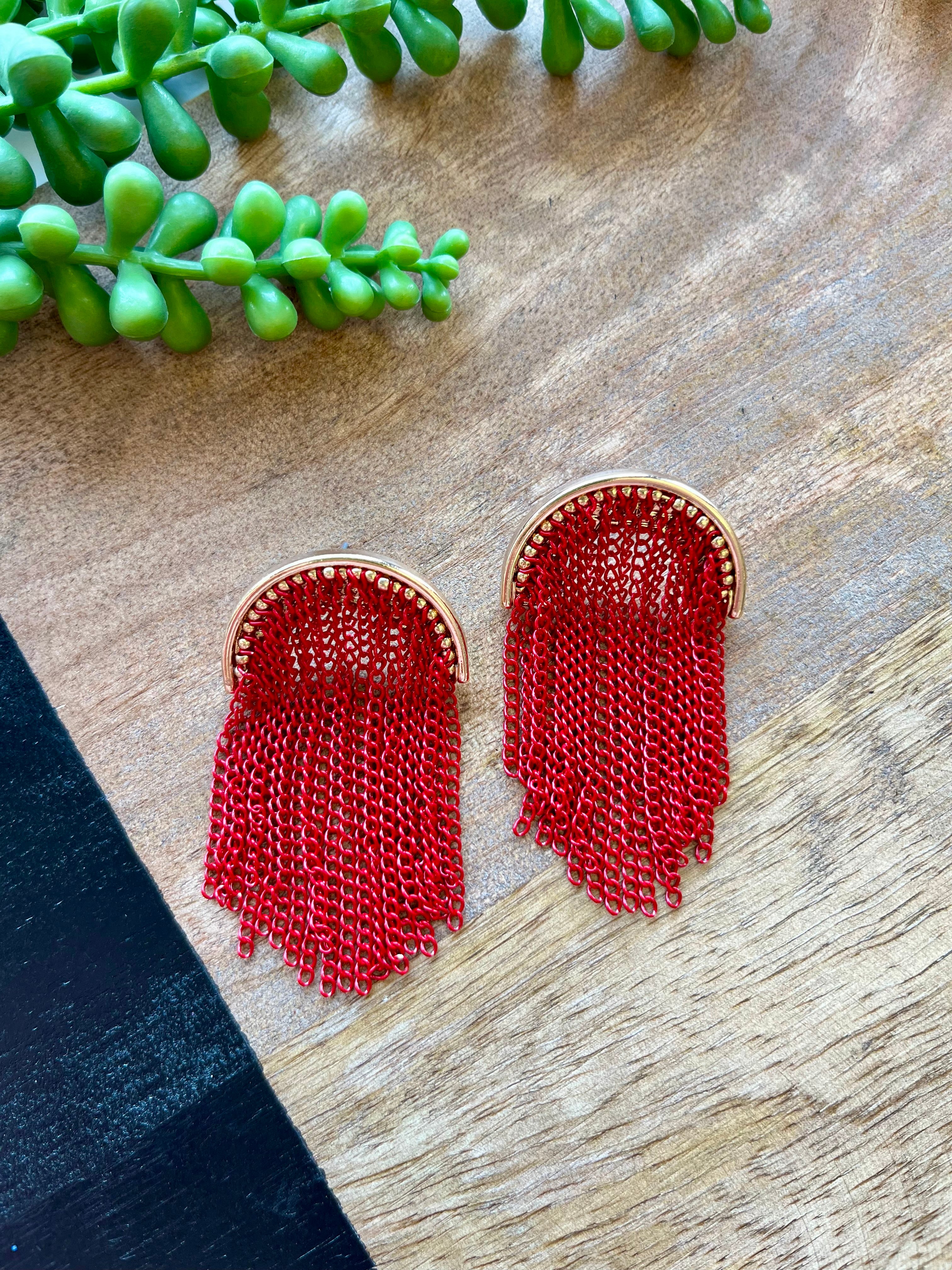 Elevate your style with these Red Chain Half Circle Earrings, designed to dazzle with their unique, eye-catching chain detail. Perfect for game day, Christmas, Valentine’s Day, the 4th of July, or any occasion when you want to show off your love for red. Lightweight and bold, they add a playful pop of color that’s sure to turn heads wherever you go.