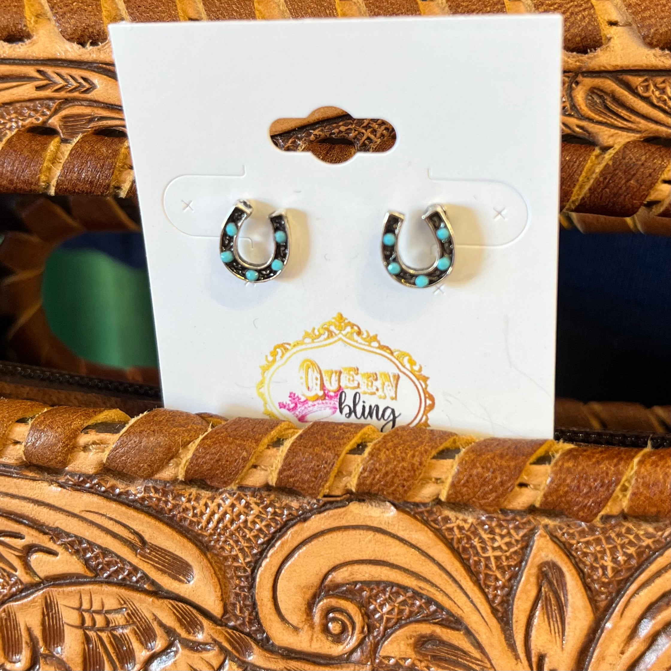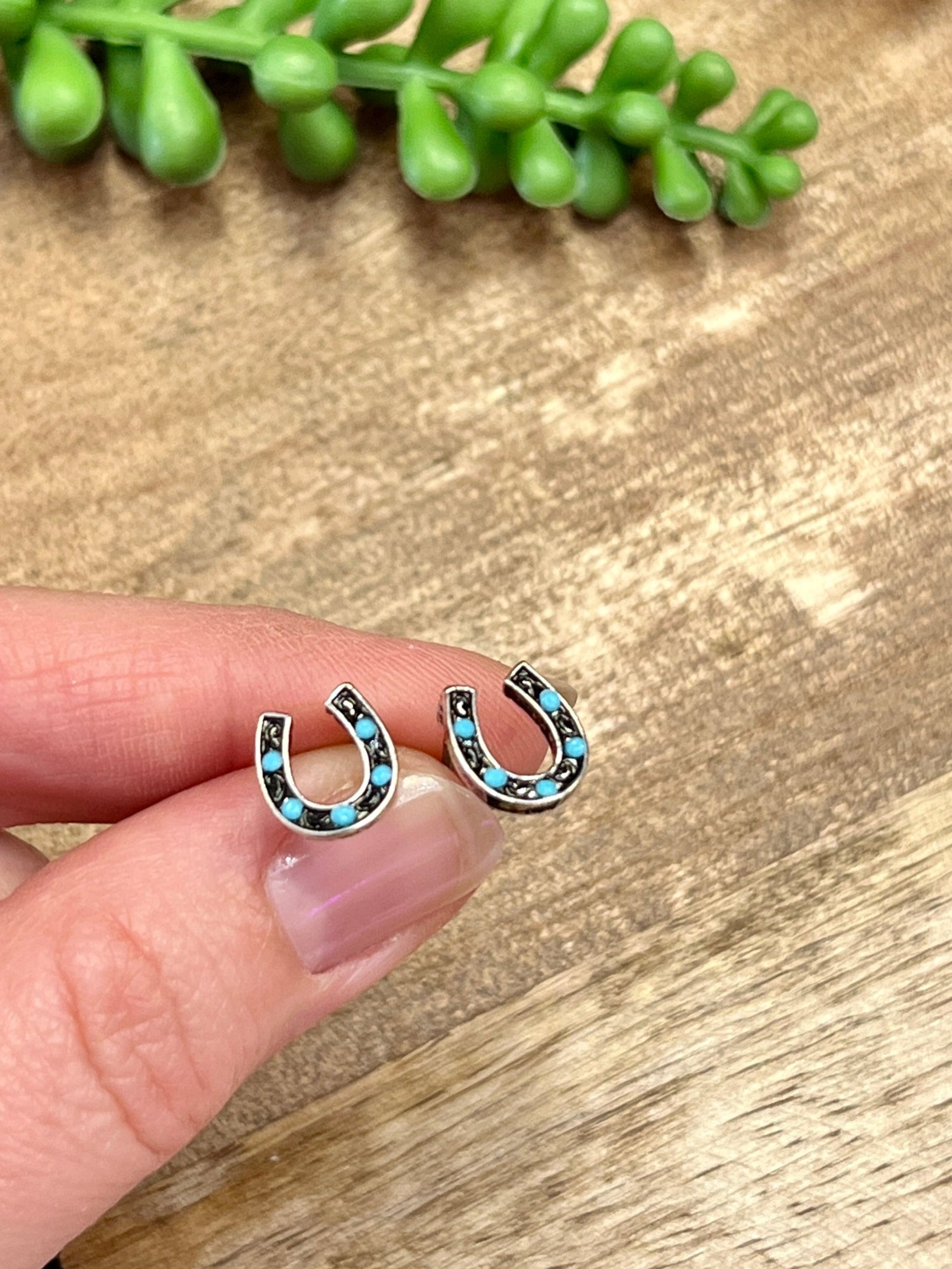 Silver & Turq Mini Horseshoe Studs