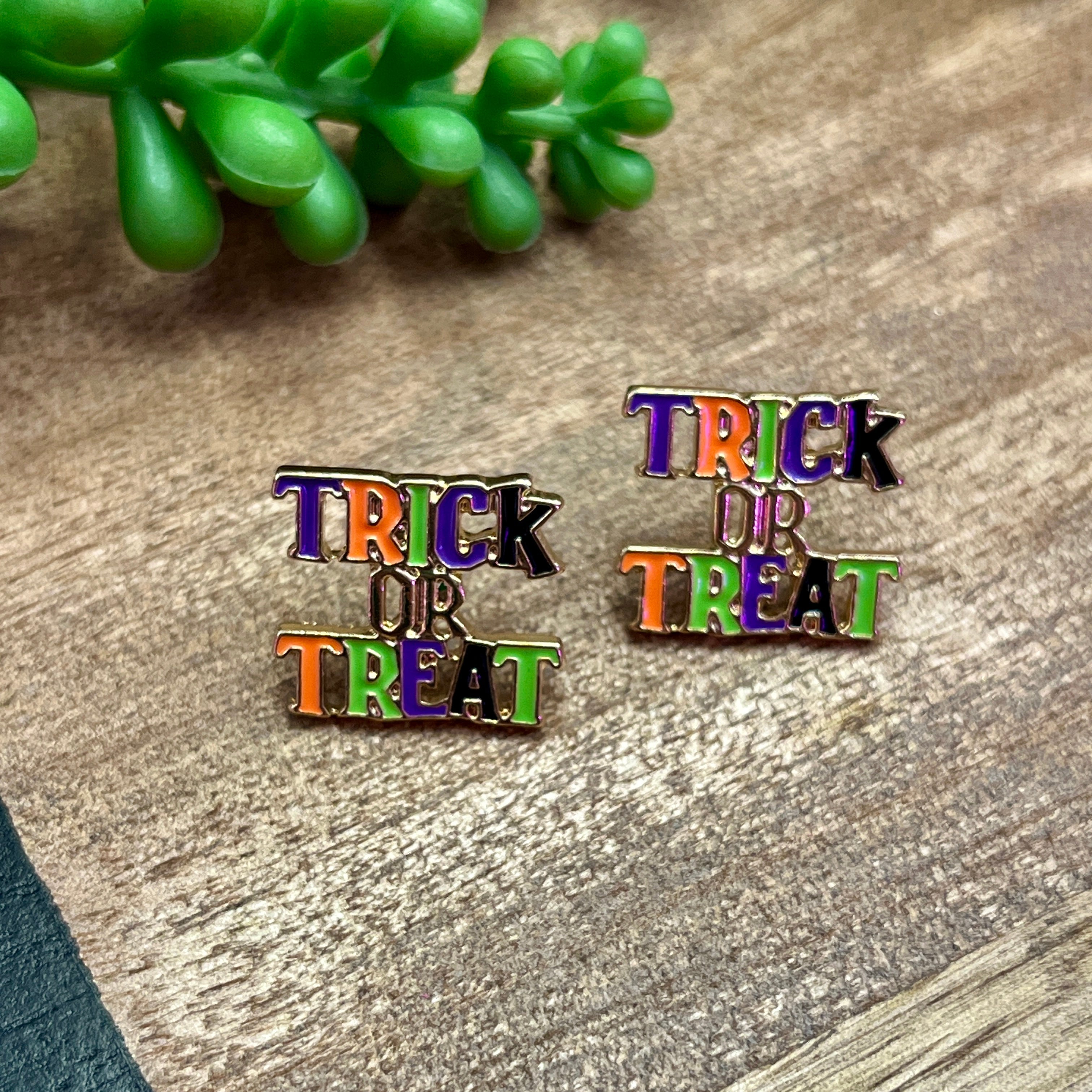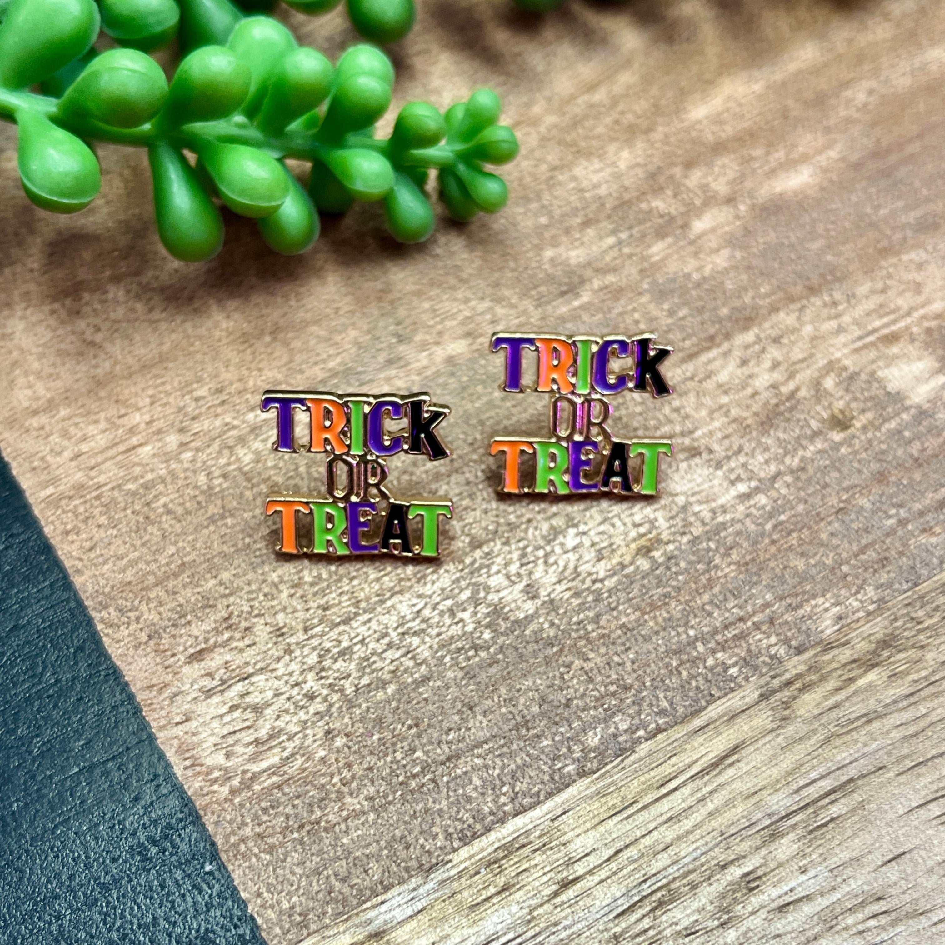 Add a festive touch to your look with these adorable Trick or Treat Stud Earrings. Featuring classic Halloween colors, these playful earrings are perfect for celebrating spooky season in style. Compact and charming, they make a delightful accessory for any Halloween outfit or a fun gift for someone who loves the holiday spirit.