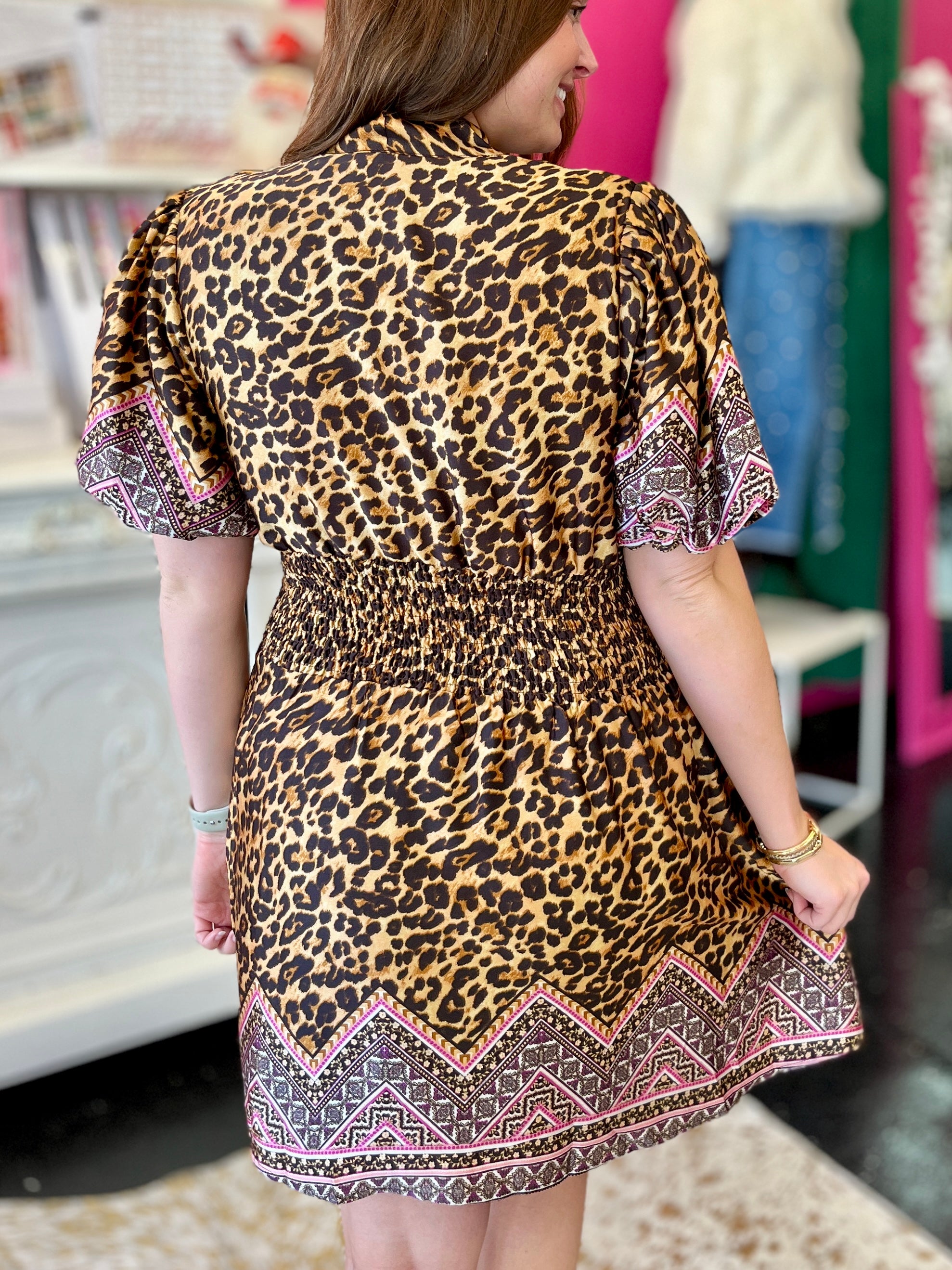 - Leopard Print Dress with Tile Border