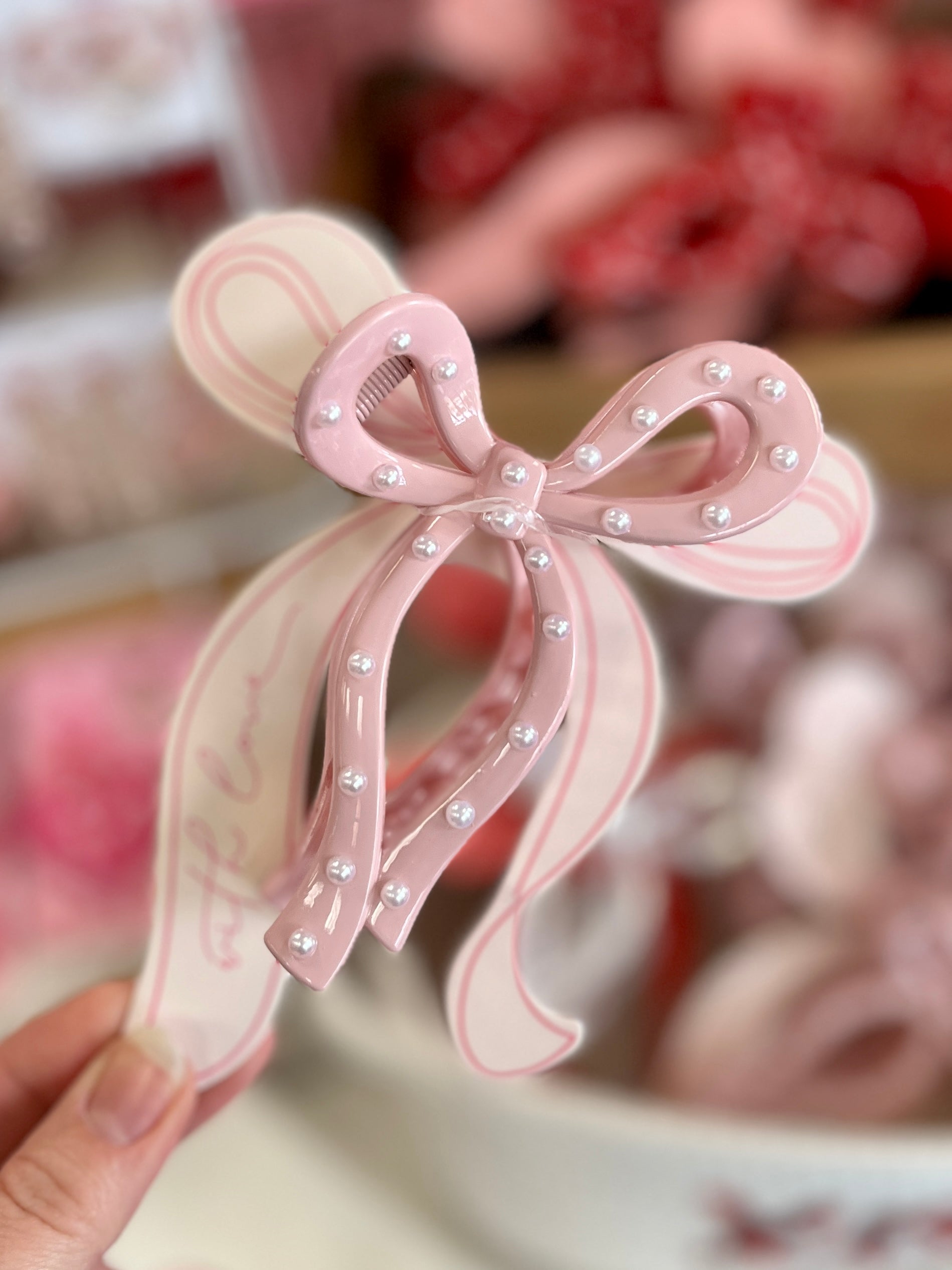 Elevate your hair game with this stunning pink and pearl bow clip—a timeless accessory that brings instant elegance to any look. The delicate pearl accent adds a touch of sophistication, while the bold bow shape makes a playful statement. Perfect for everyday wear or special occasions, this precious piece is as gorgeous on you as it is wrapped up as a gift. Snag yours today and let your style shine!
