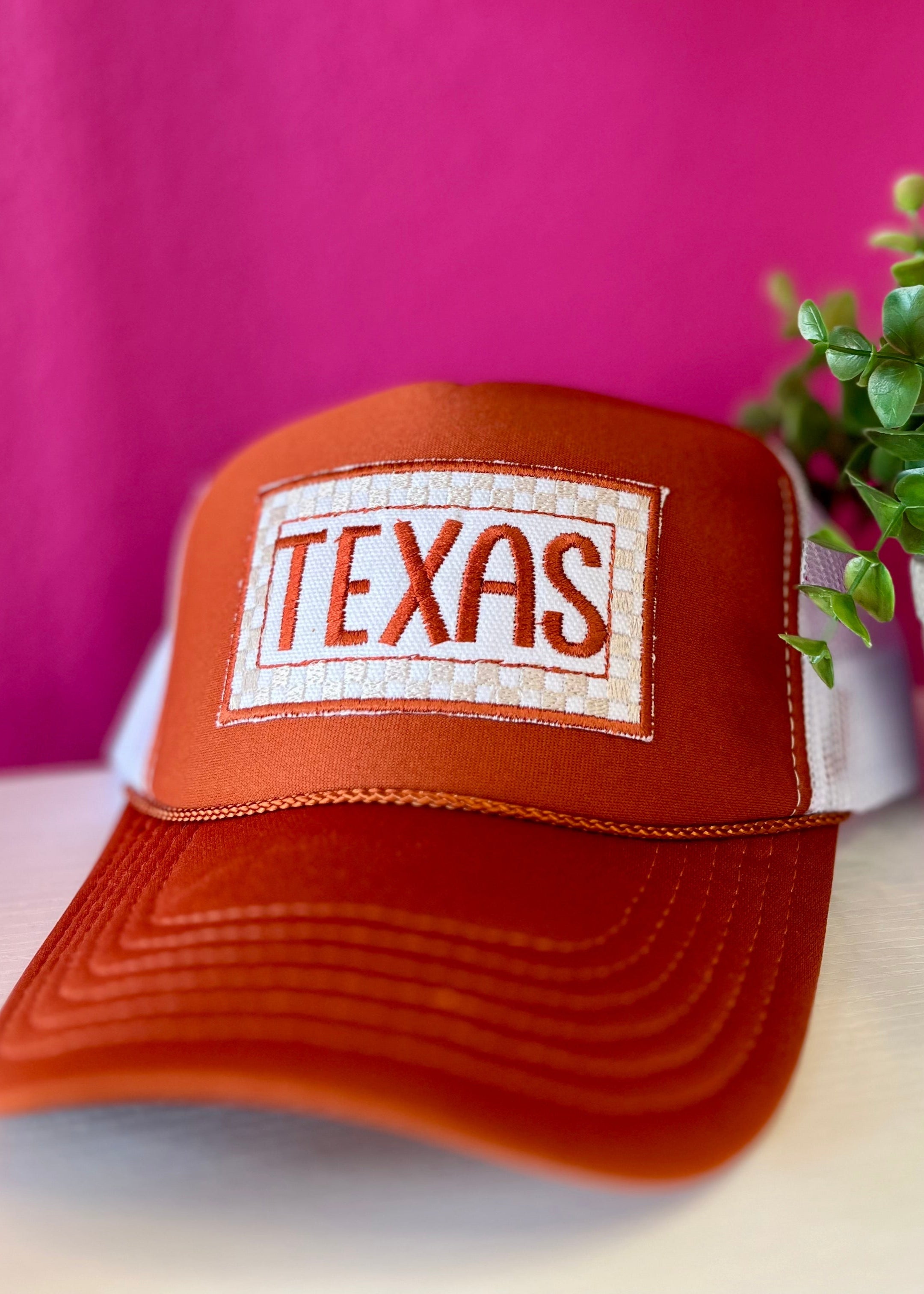 UT fans, beat the Texas heat in style with the Texas Check Burnt Orange Trucker Hat! This playful, breathable hat is perfect for those hot gamedays, keeping you cool while showing off your Longhorn pride. It’s the ultimate accessory to complete your fan look.