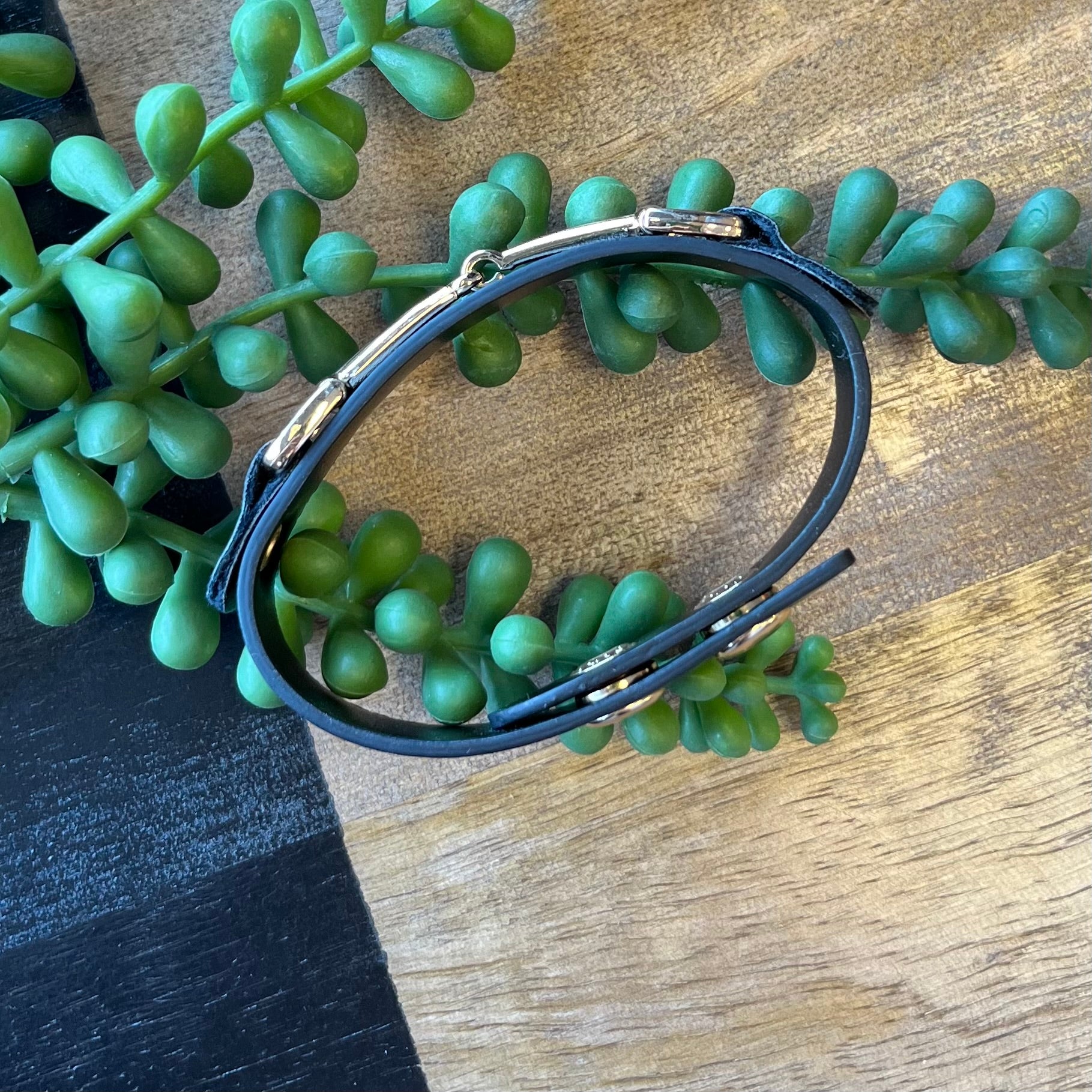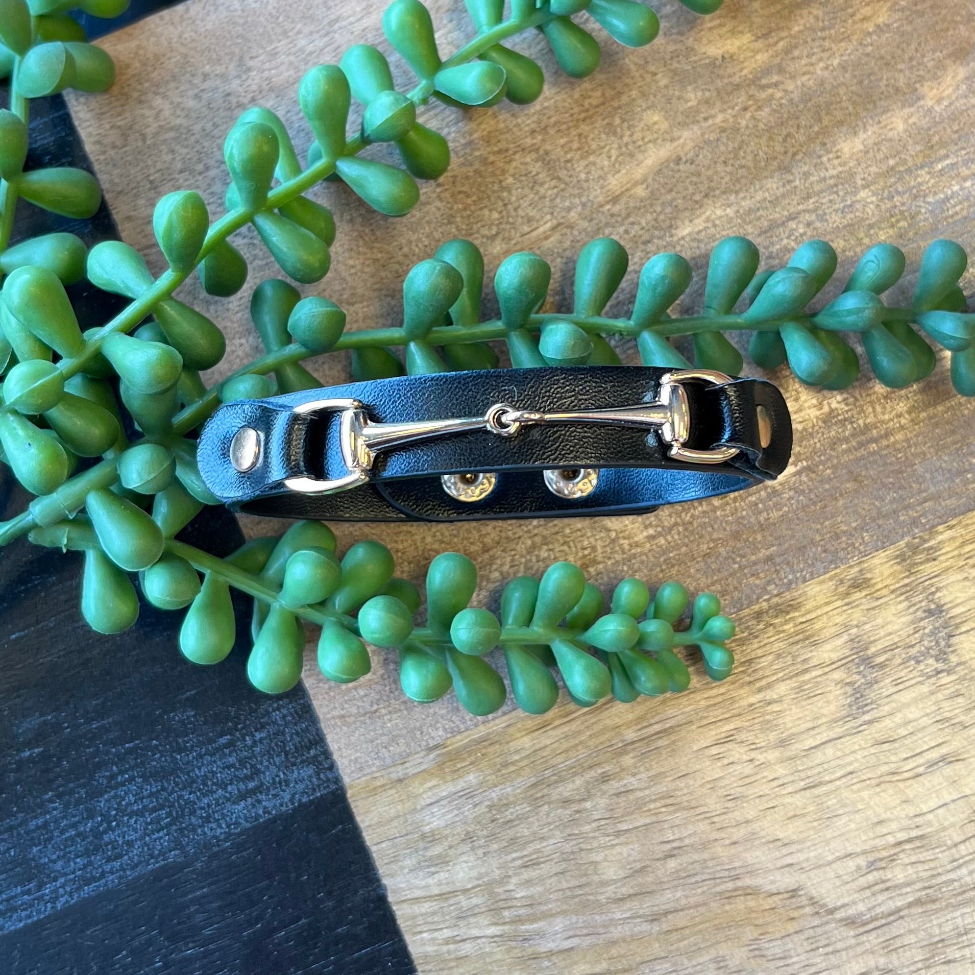 Saddle up and give off some major Ralph vibes with our Black Equestrian Bit Leather Bracelet. This trendy piece adds a touch of equestrian style to any outfit and is so cute, you'll want to wear it everywhere. Don't miss out on this must-have accessory!