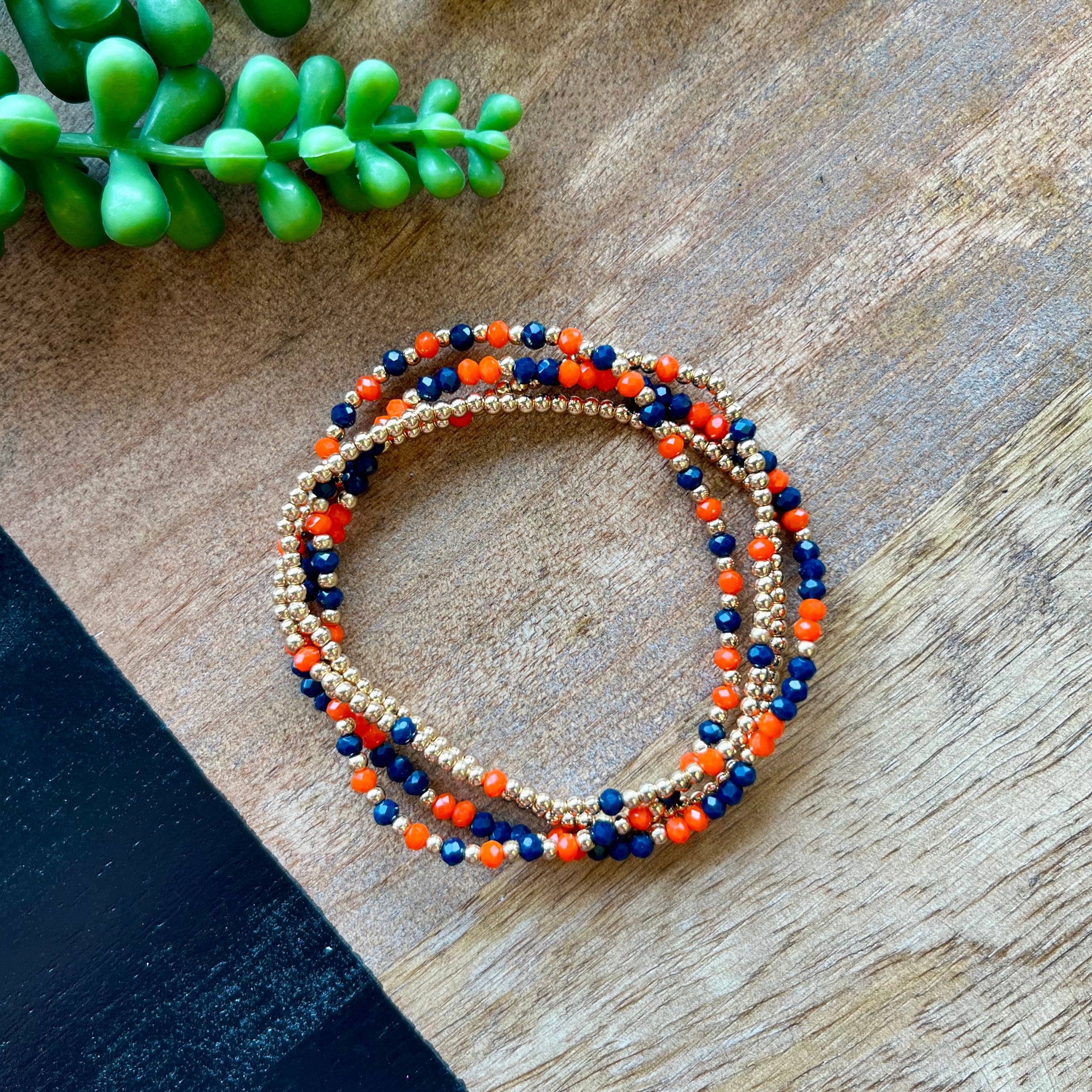 Navy & Orange Mini Bead Gameday Bracelet Set