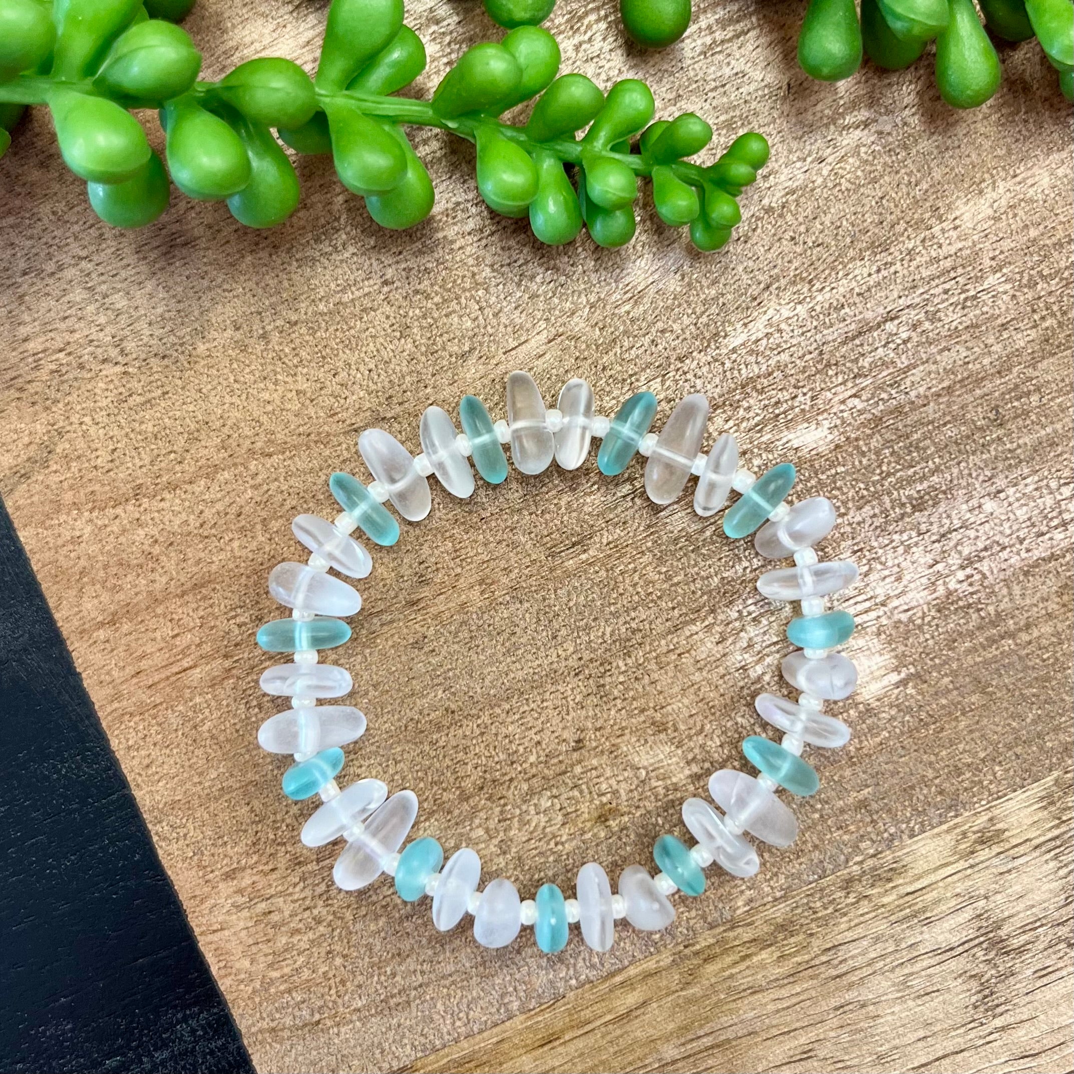 Create the ultimate summer stack with our Clear & Turq Pebble Bracelet. Lightweight and oh-so-adorable, it's the perfect addition to any wrist. Get ready to rock your style!