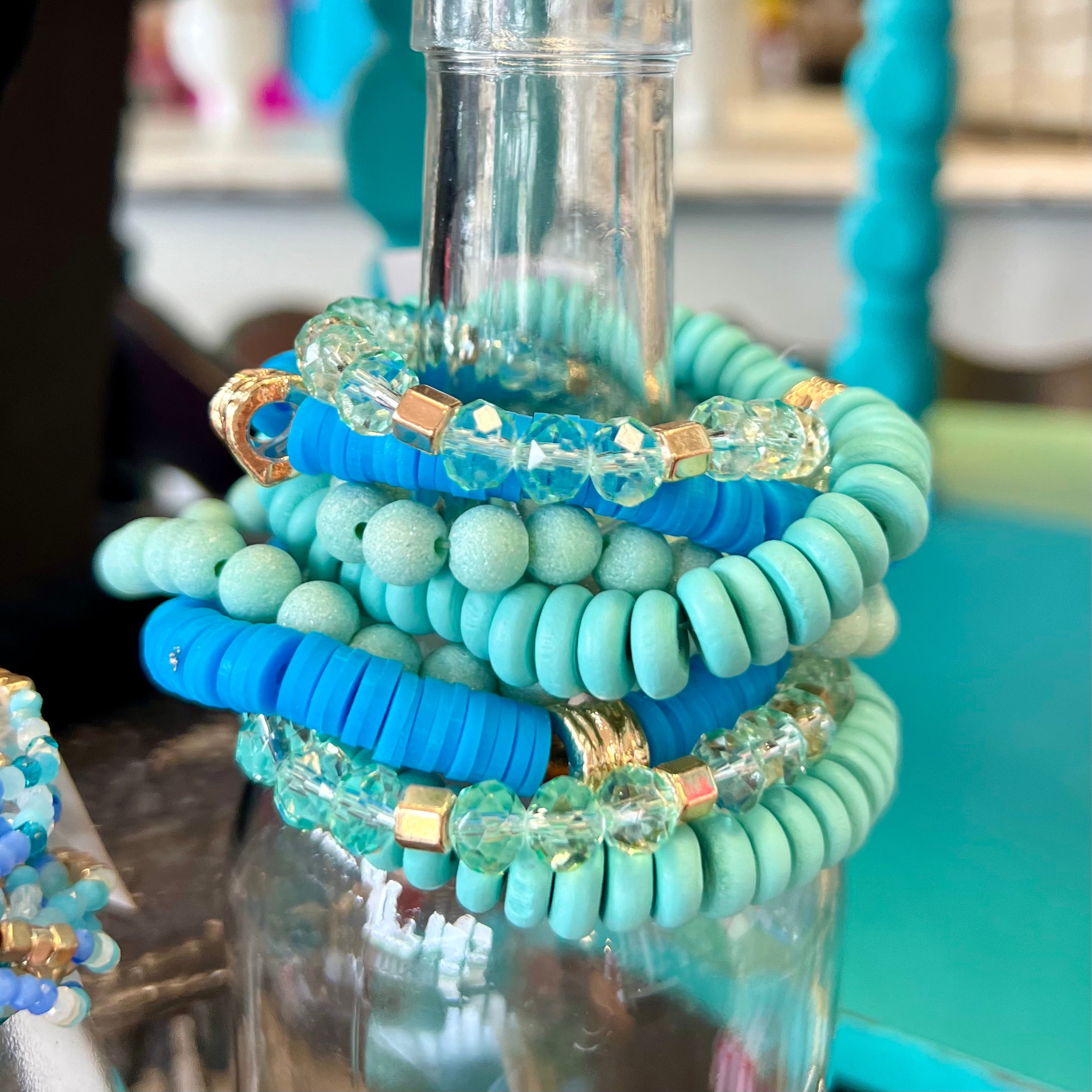 Elevate your wrist game with our Turq Blue Tone Bracelet Set. With 4 stretchy bracelets, you'll have the perfect pop of color for any outfit. No need to worry about sizing, these beauties stretch to fit. Time to add some fun to your accessory game!