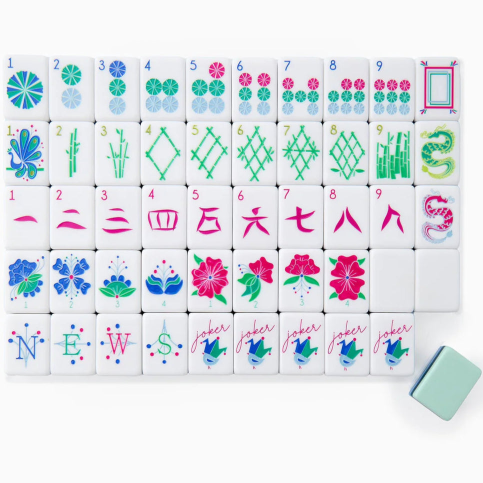 Introducing the Birdie Mahjong collection, inspired by the game's most eye-catching element - the vibrant blue and green Bird Bam! This set features a captivating interplay of navy, seafoam, and light blue tiles, guaranteed to turn heads at your next Mahjong night. These hand-painted tiles are crafted from high-quality materials for lasting use, the Birdie line is perfect for players of all levels. Each set includes a complete set of 160 tiles, making it the ideal gift for Mahjong lovers or a luxurious upgrade for your game nights. So ditch the boring tiles and add a touch of elegance - Let's play Mahjong with the Birdie collection!