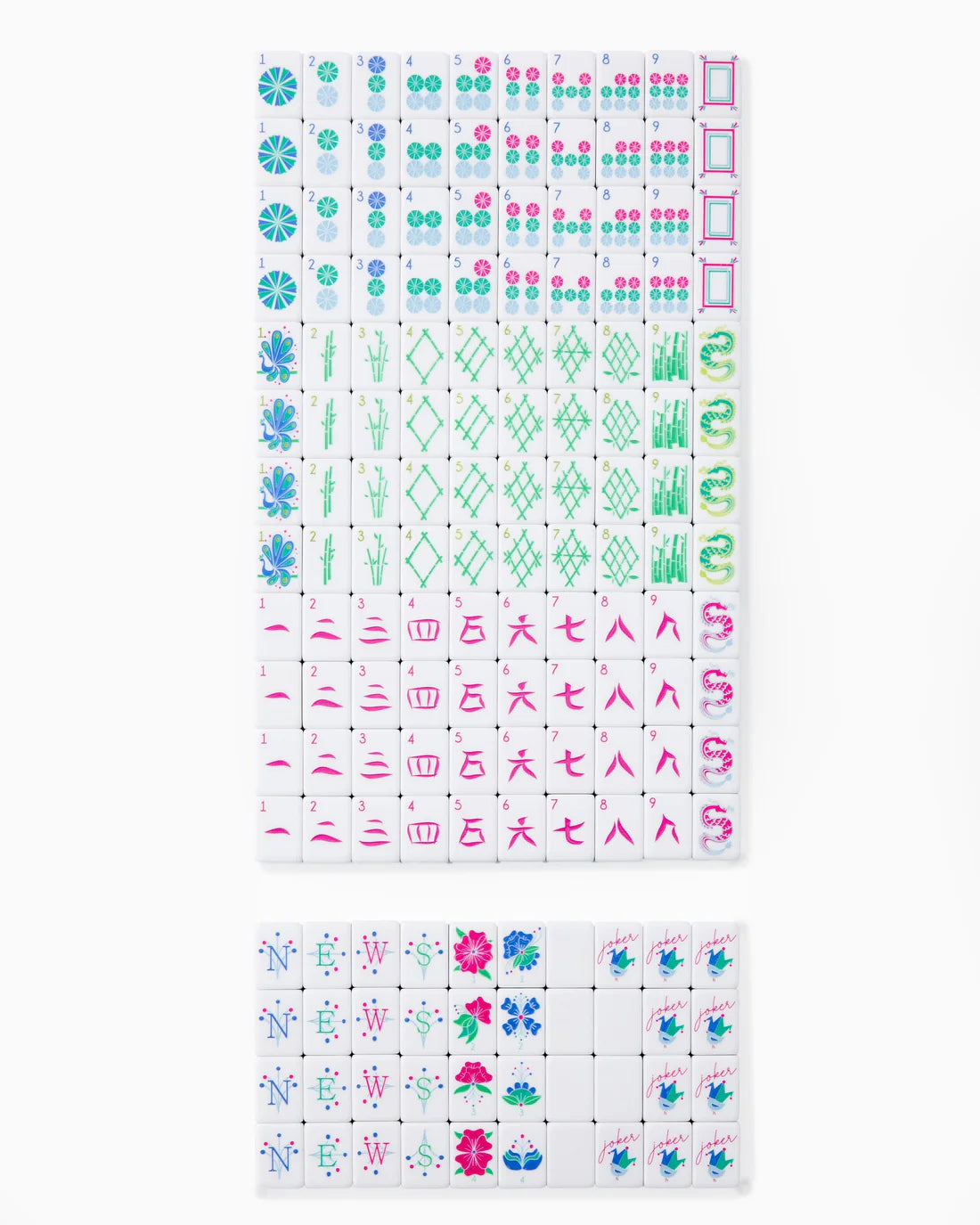 Set includes Tiles, Dice/Coin Bag and 4 Instructional Cards (If playing American Mahjong, will need to purchase NMJL Playing Card separately.