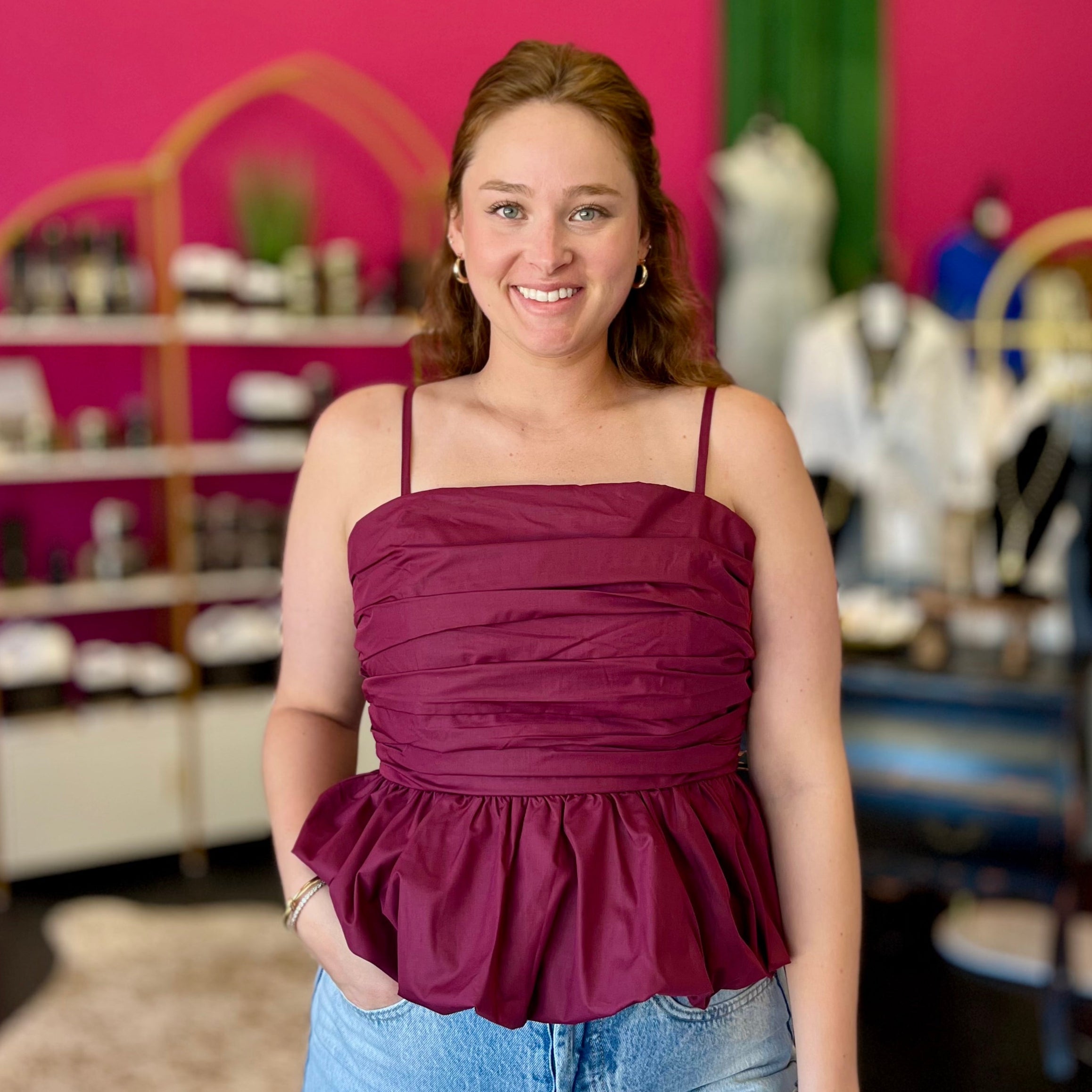 Get ready for game day in the cutest maroon layered peplum top! This playful piece adds a flirty flair to your look while keeping you comfy and stylish. Perfect for cheering on your team or just showing off your love for the season—love, love, love this charming top!