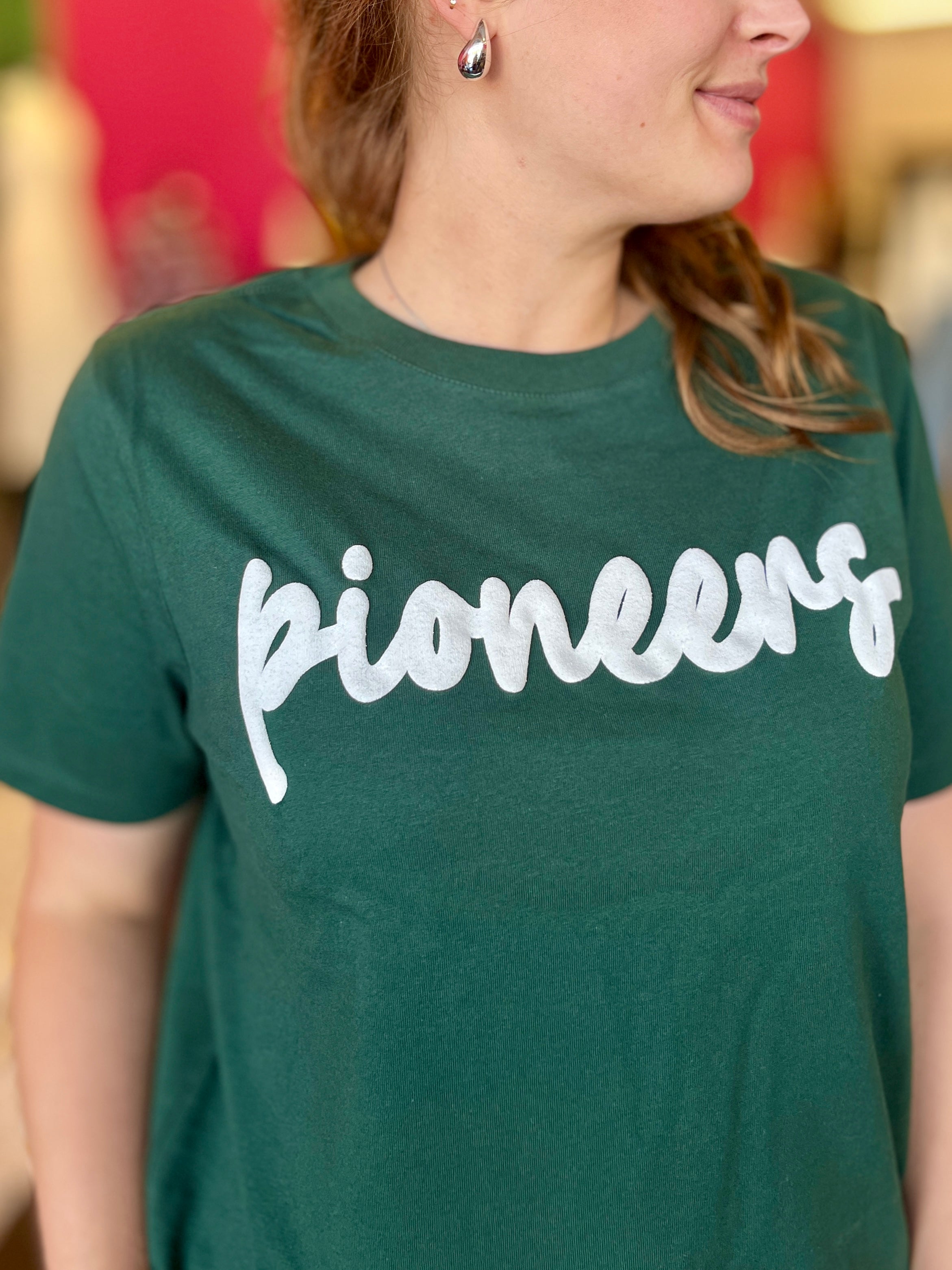 Celebrate your LSA pride with the Pioneers Puff Print Green Tee! This fun and comfy shirt features bold puff print lettering that pops, perfect for showing off your school spirit in style. Whether at a game or around campus, this tee’s playful design keeps your pioneer pride front and center.