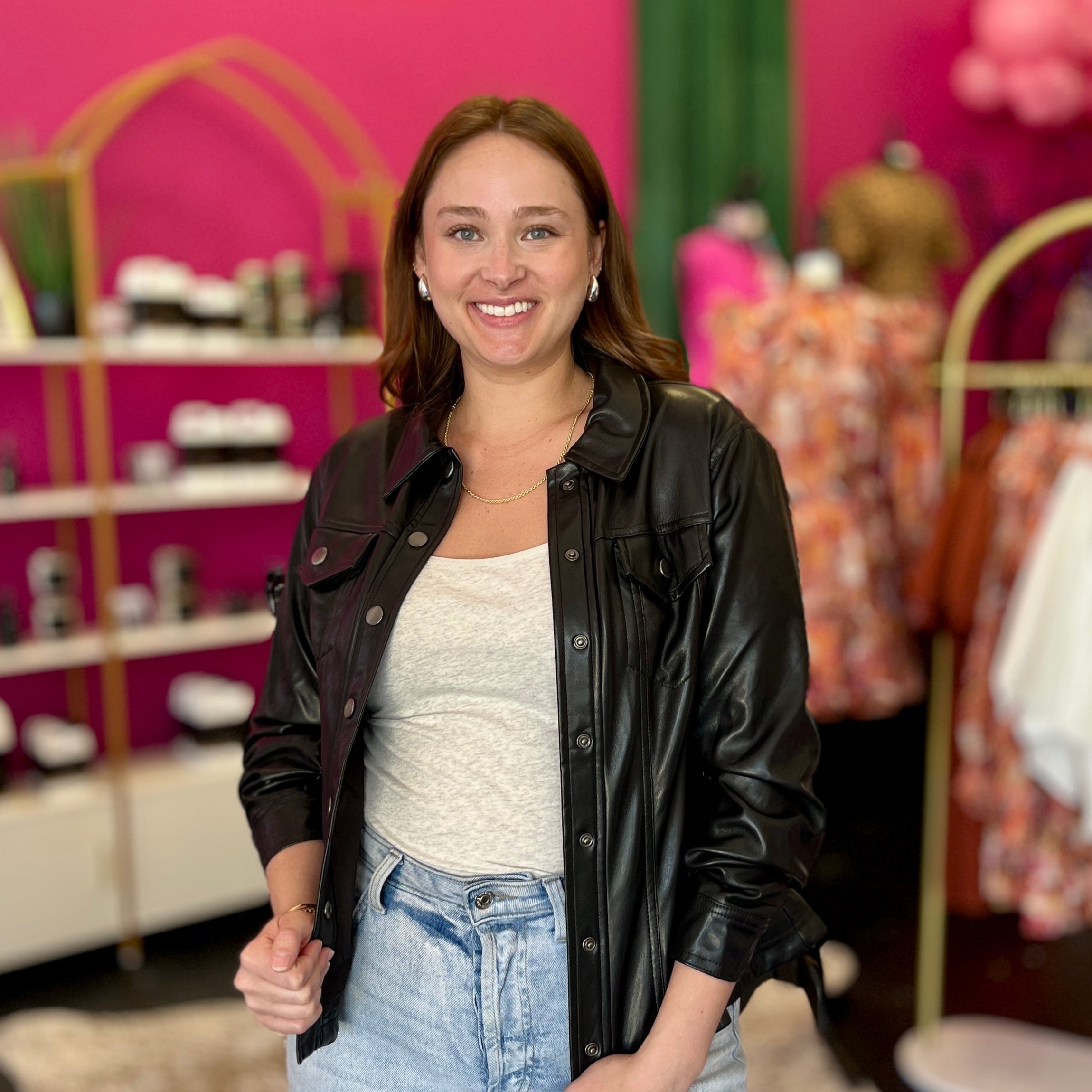 Turn heads with this Black Faux Leather Peplum Shajacket! Its sleek faux leather finish adds a stylish edge, while the 3/4 sleeves keep it fun and flirty. The peplum design beautifully accentuates your waist, giving you that perfect hourglass silhouette. Perfect for adding a bold statement to any outfit!