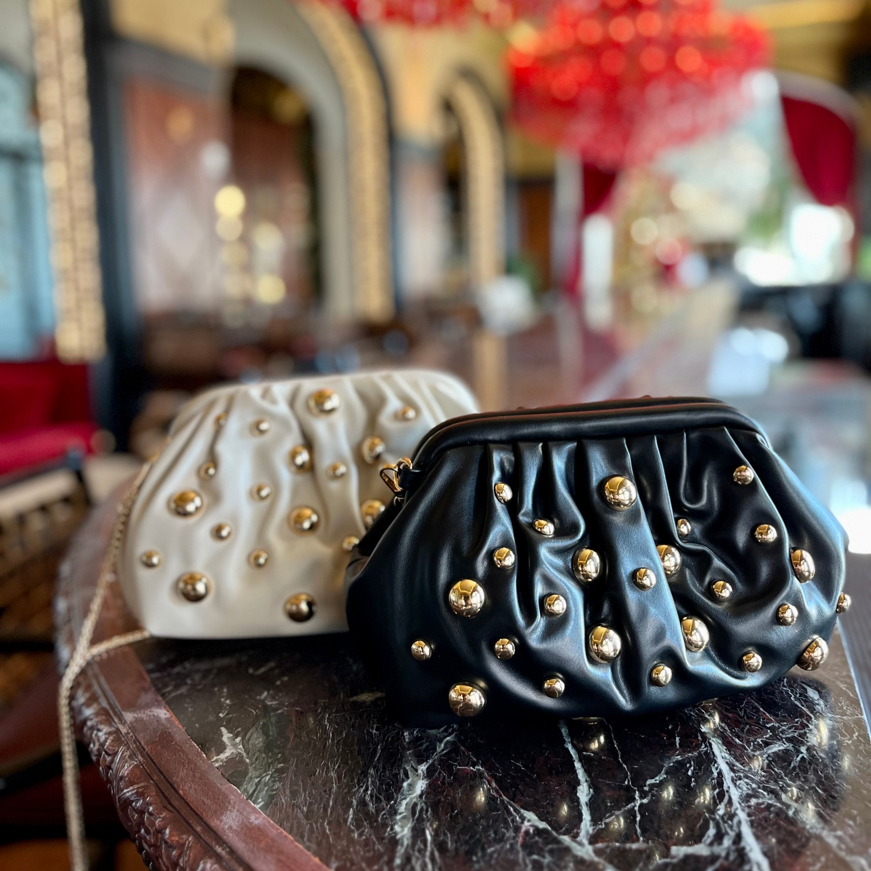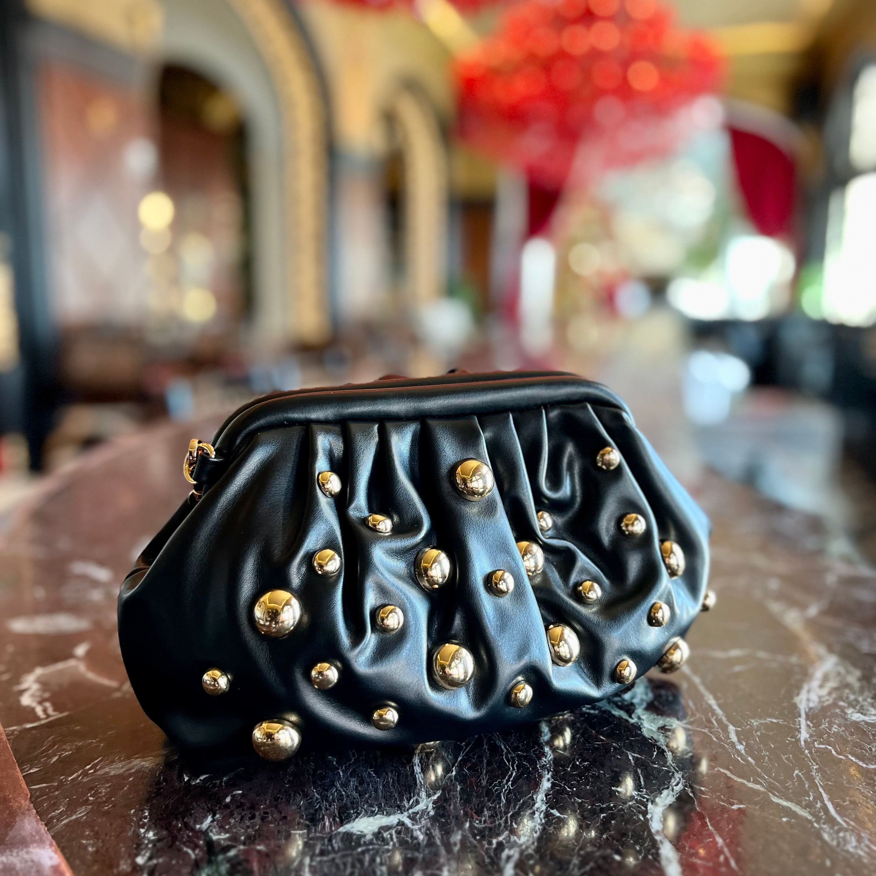 Introducing the Carey Black Studded Clutch - the cutest crossbody for a night out! With its studded design and versatile style, this clutch is perfect for adding a touch of edge to any outfit. Say goodbye to bulky purses and hello to hands-free convenience.
