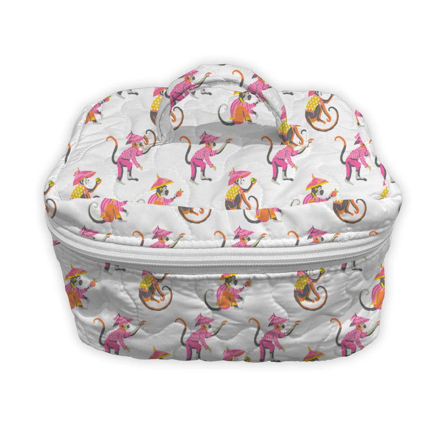 Monkey Icon White Quilted Travel Case