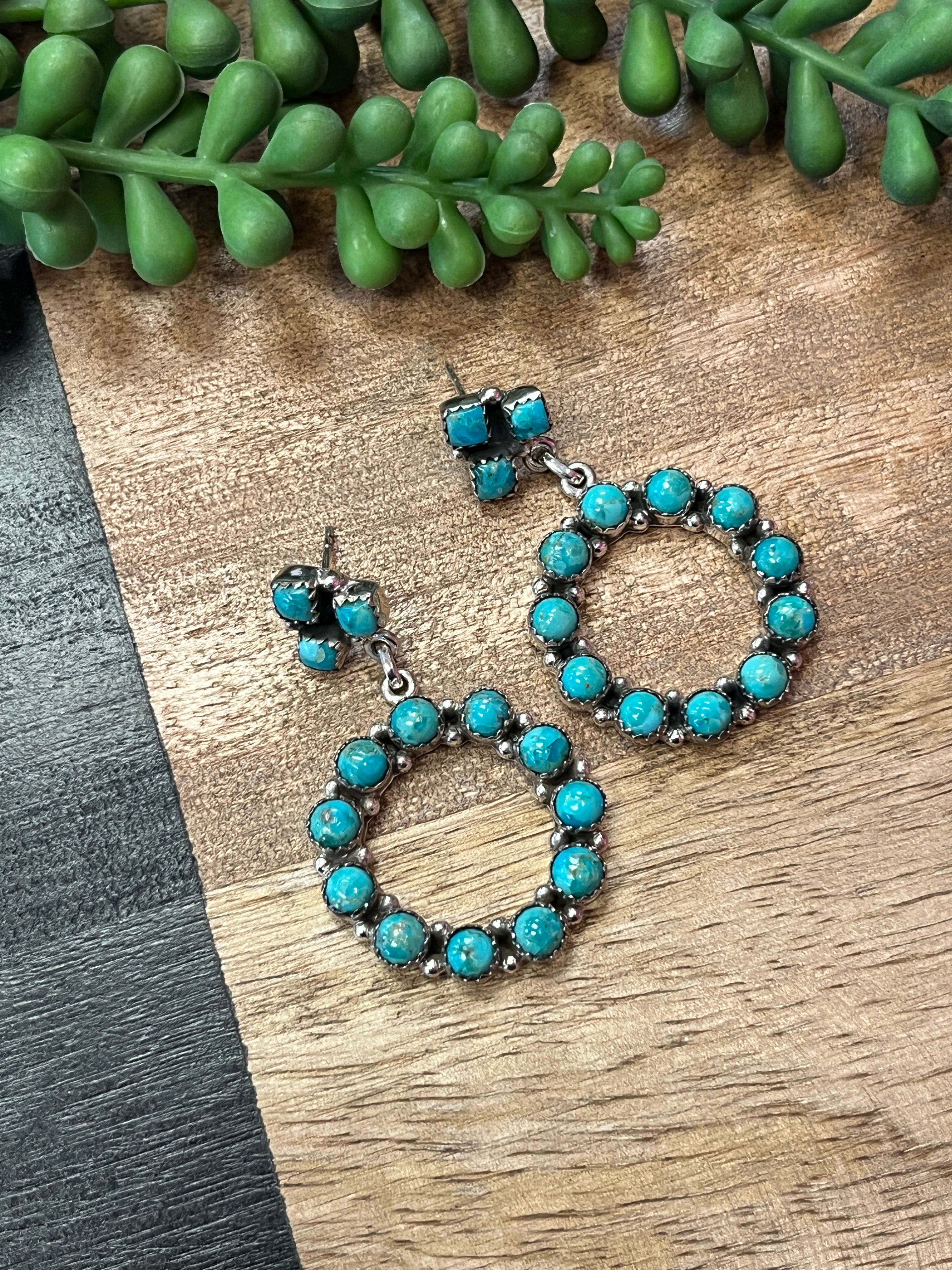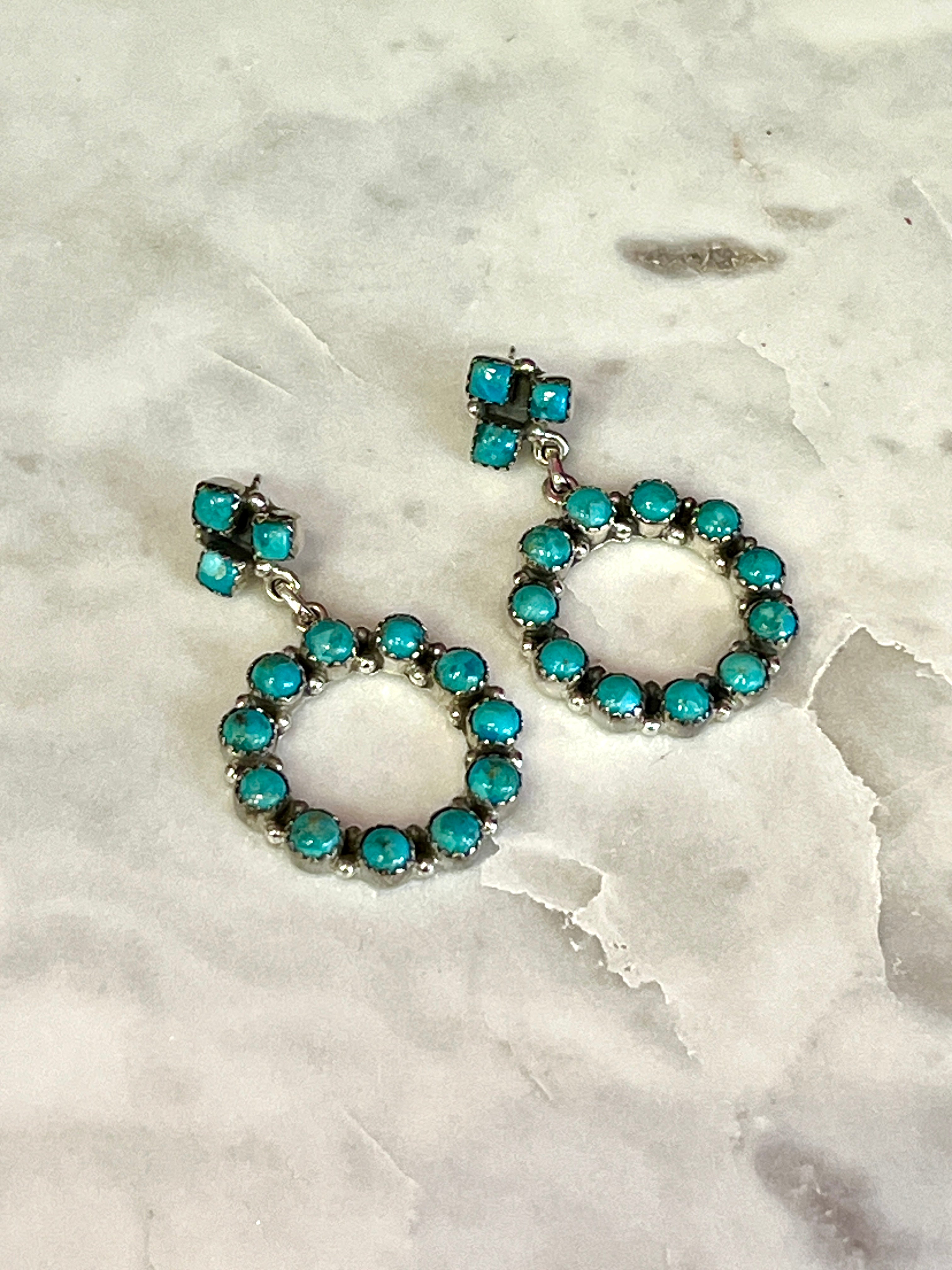 Elevate your turquoise game with these stunning Authentic Kingman Turquoise Circle Earrings. Their timeless circular design pairs effortlessly with any turquoise piece in your collection, making them the perfect companion to your existing favorites. Whether you're layering with other turquoise accessories or letting them shine solo, these beauties add that extra touch of southwestern charm to any look. A must-have addition for turquoise lovers everywhere.