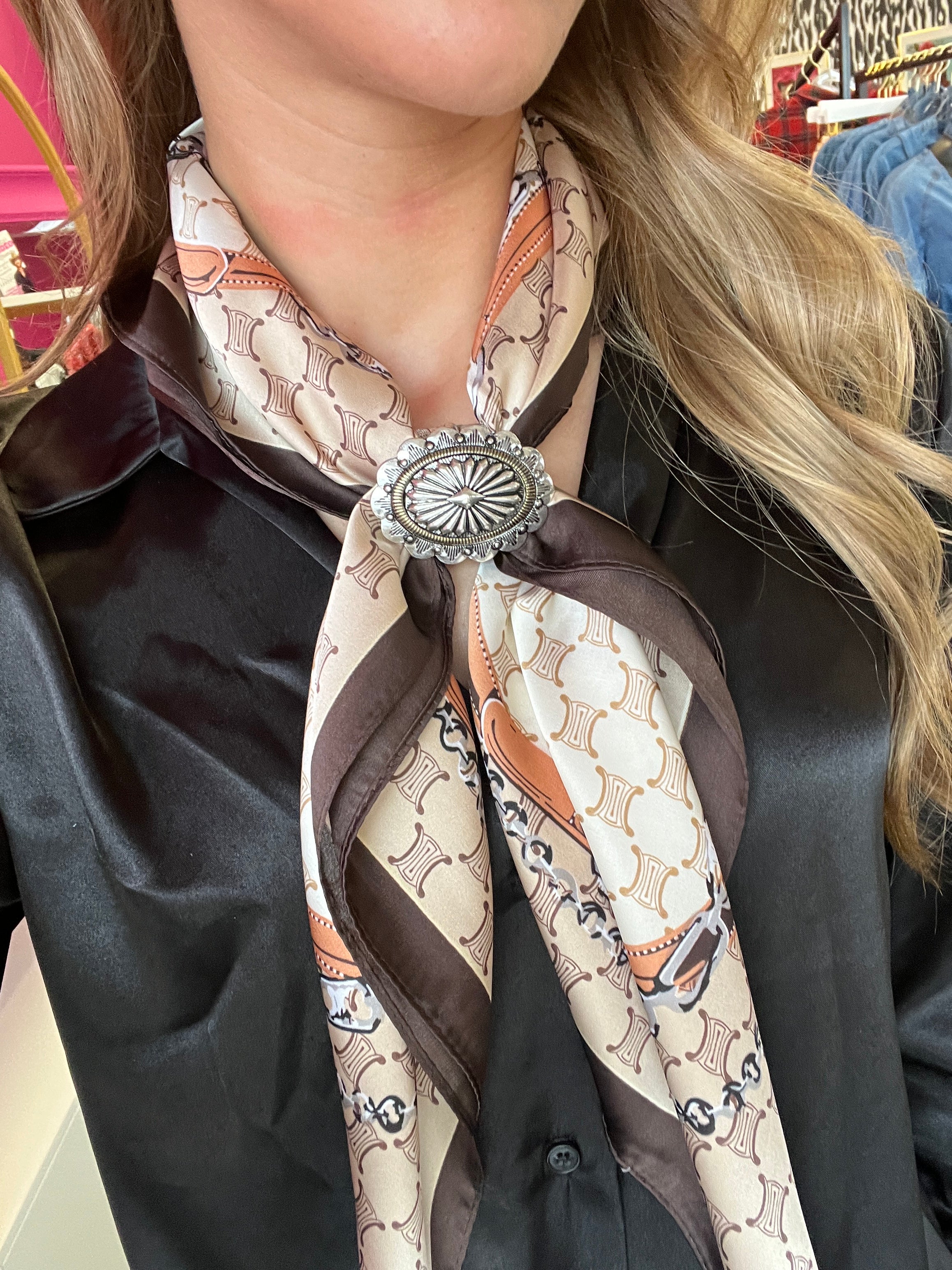 - Large Mixed Metal Concho on Stretch Scarf Slide