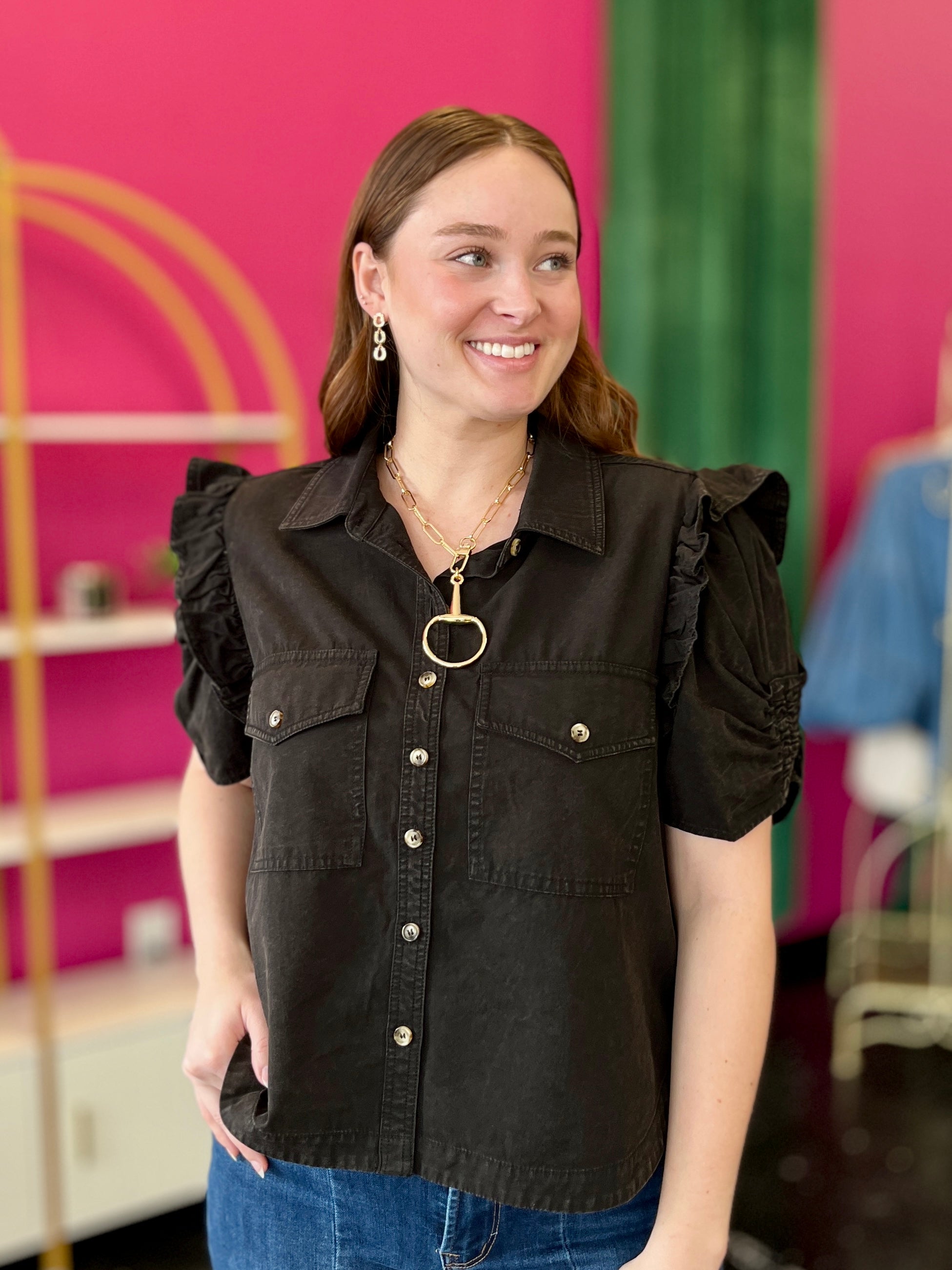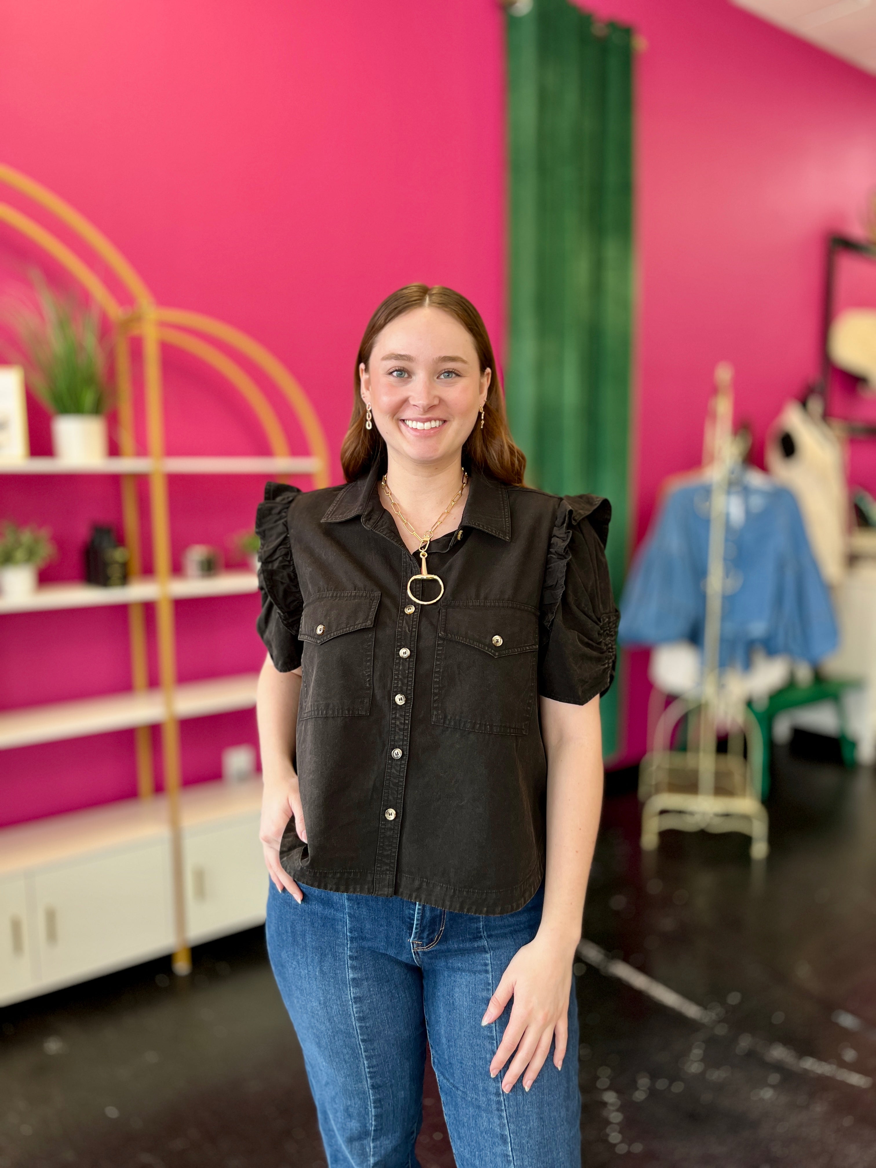 Black Mineral Wash Button Up Top