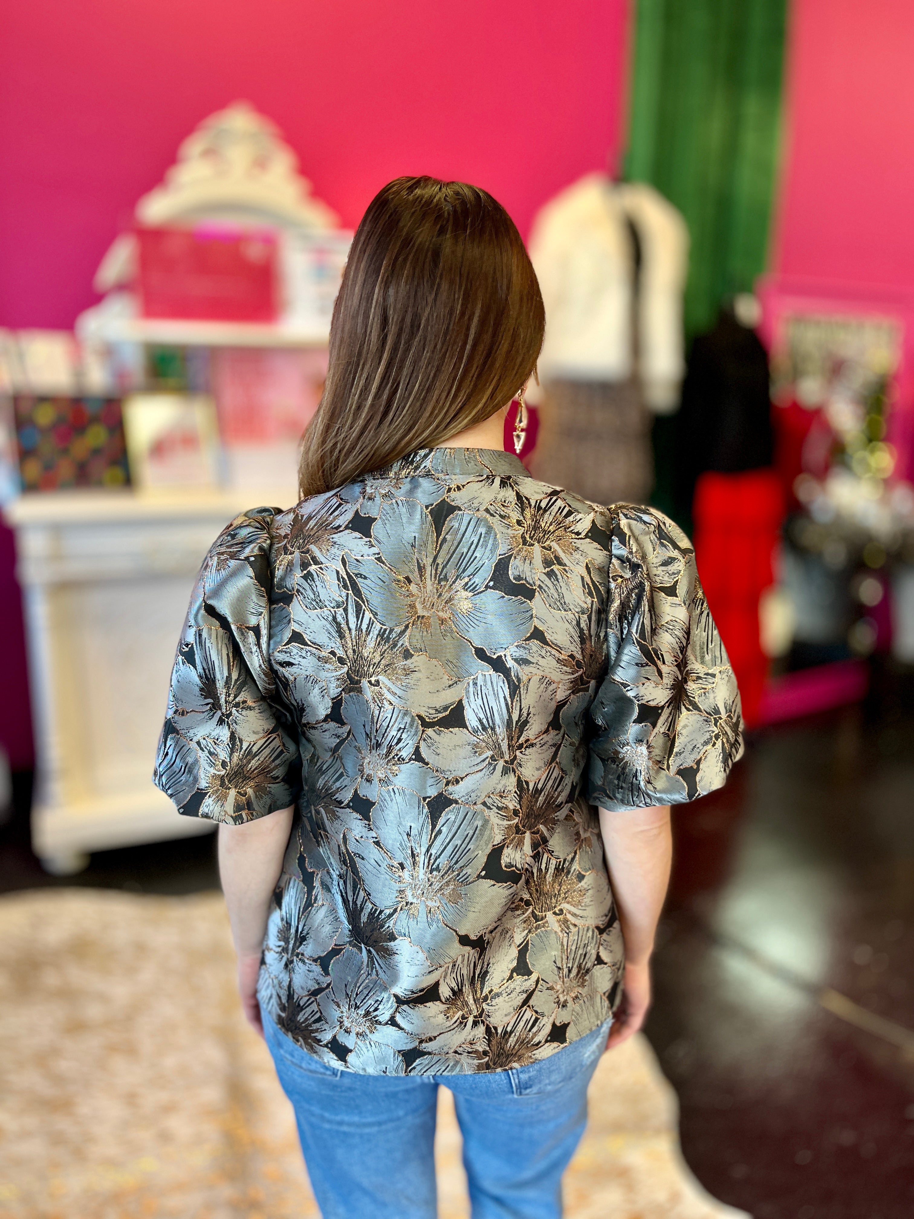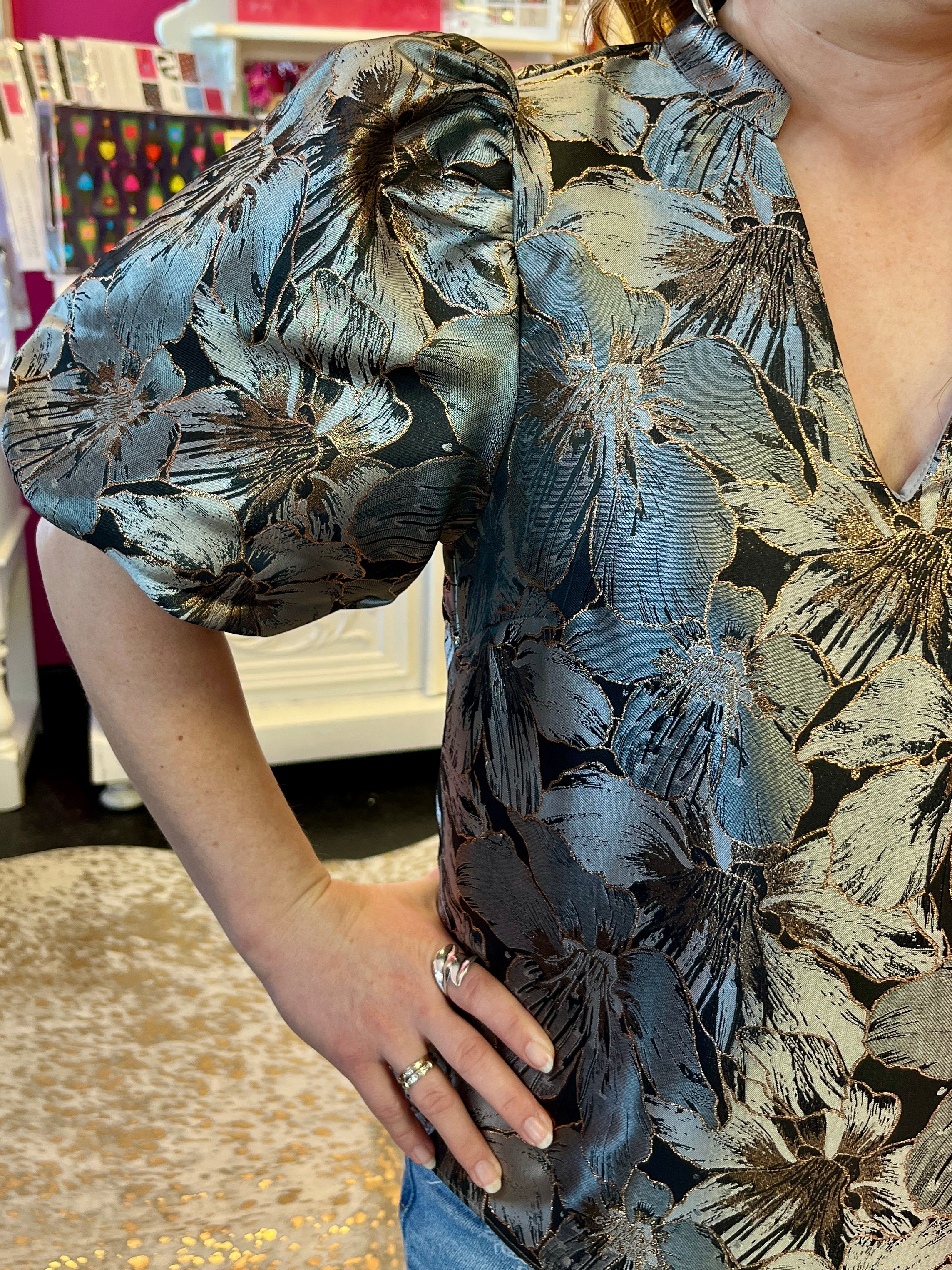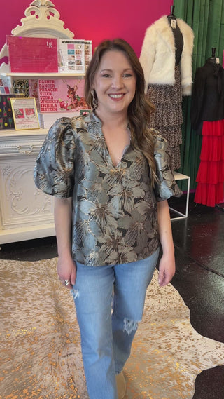 Elevate your wardrobe with this adorable puff sleeve top featuring a stunning gray metallic fabric that catches the light beautifully. The voluminous sleeves add a touch of whimsy and charm, while the sleek metallic finish keeps things modern and chic. Perfect for date night, brunch with friends, or whenever you want to feel fabulous. This piece effortlessly transforms any outfit into something special—because who doesn't love a little extra sparkle and sass?