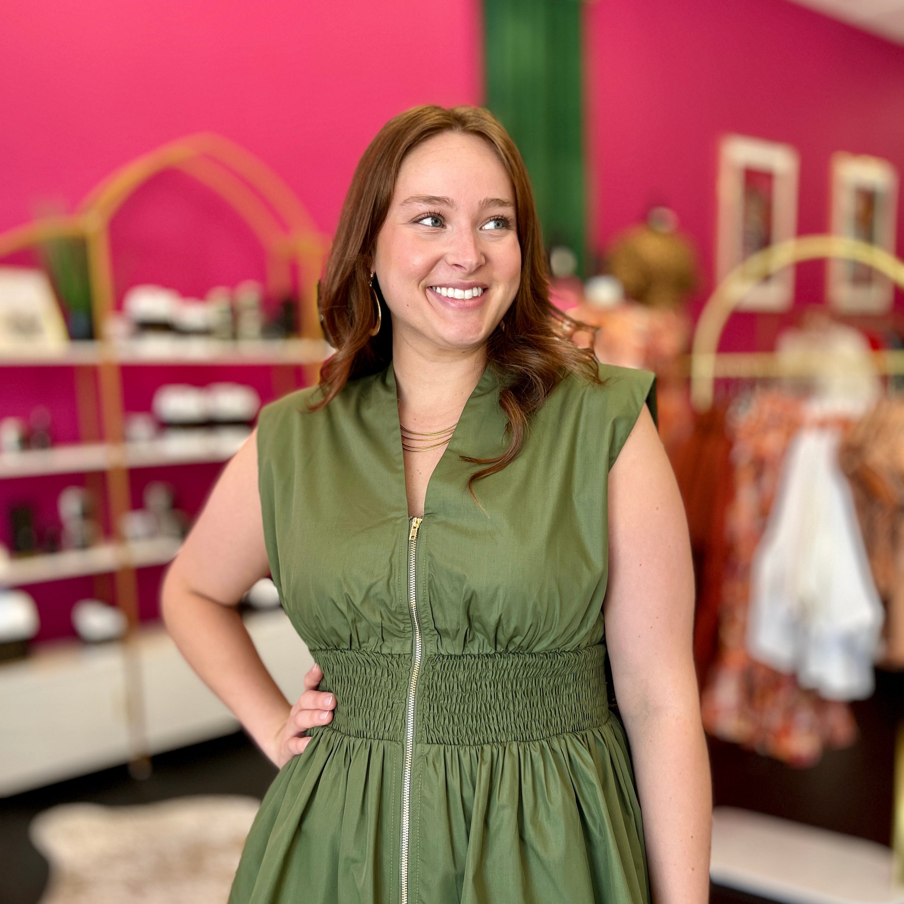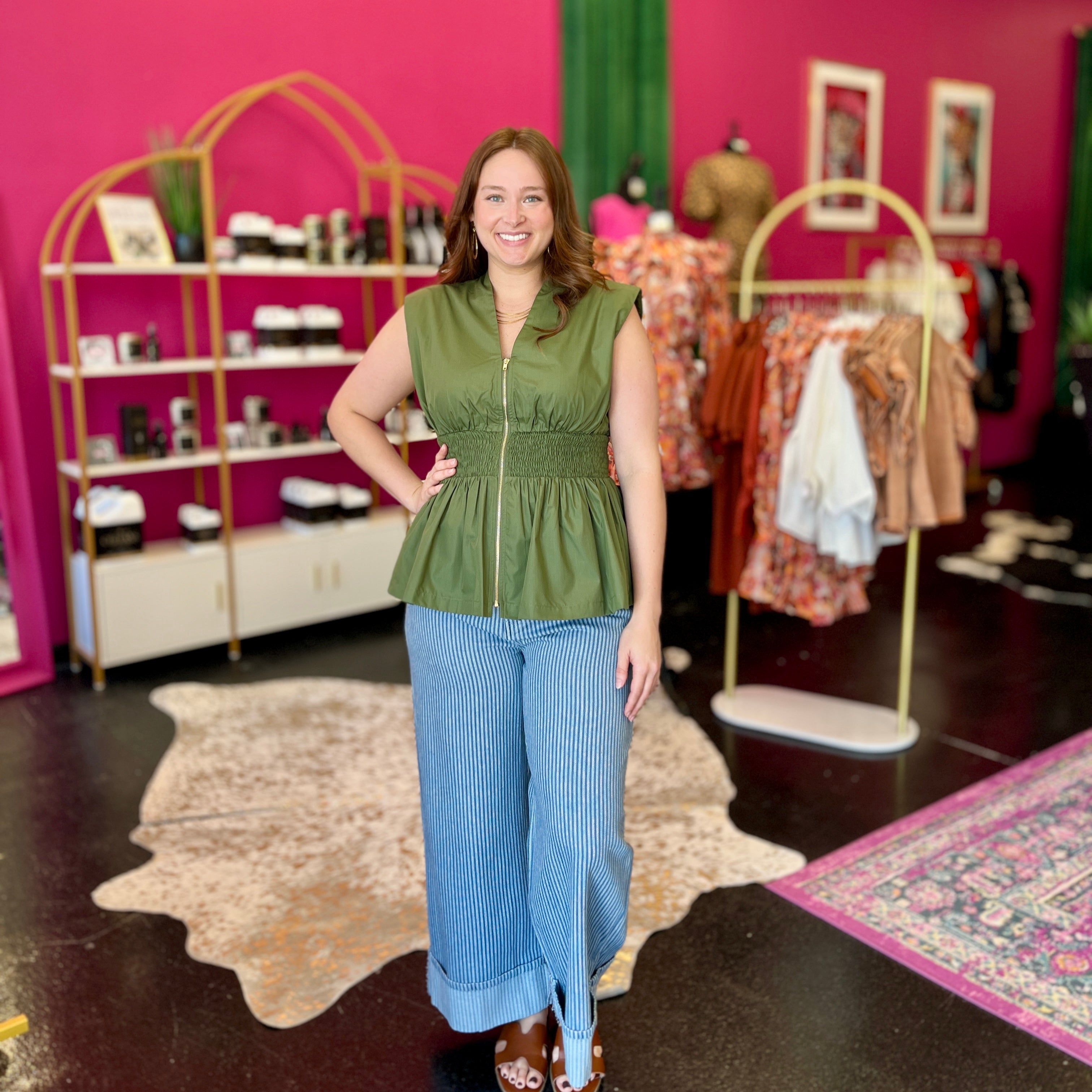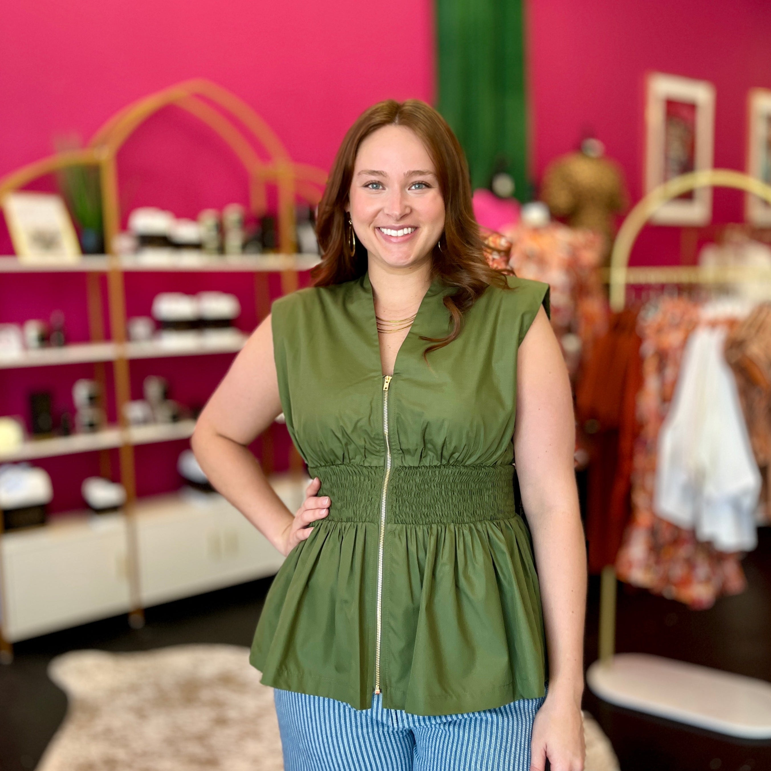 Embrace the cozy vibes of fall with the Olive Smocked Waist Top! Its smocked waist gently hugs your curves, giving you a flattering silhouette while keeping you comfortable. Perfect for those warmer autumn days, this playful top adds a touch of charm to your seasonal wardrobe.