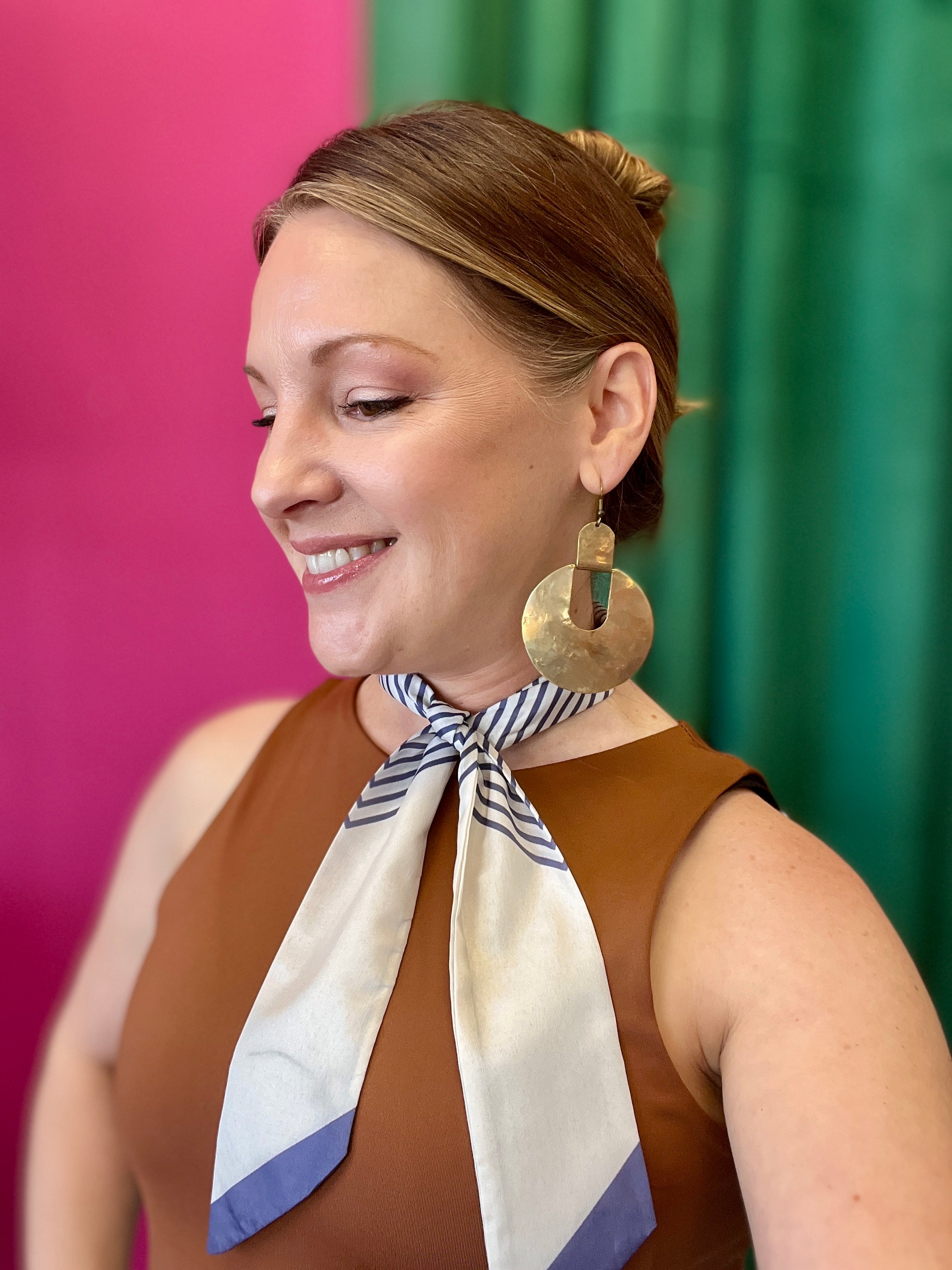 This Slate Blue Striped Twilly is your new favorite versatile accessory. Wear it as a chic necklace, tie it around your purse for a splash of style, or add a playful touch to your hair. However you choose to rock it, this twilly adds a fun and fashionable twist to any look! This would be adorable for any fall fit or a cute gameday look.