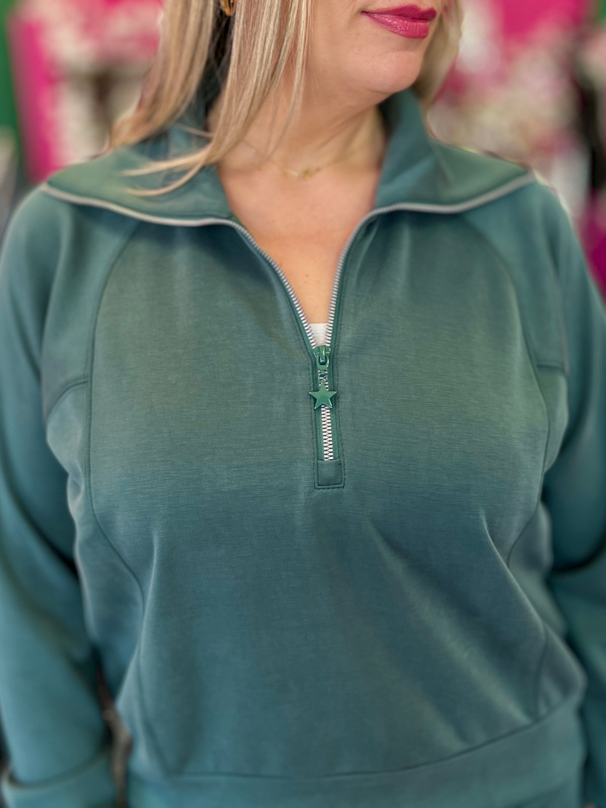 Cozy up in our Emerald Green Essentials Zip Pullover made from soft and comfortable fabric. Perfect for lounging or running errands. Complete the set with the matching pants!